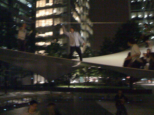 I met this fellow around 11pm on Millenium bridge. I was on my way from an event at the Hayward gallery to meet the cricketers on the edge of the City. In the middle of the bridge was a party, people testing their new sound system. I convinced them to bring it along. You can never have too many systems. Even when if the police politely ask you to turn it down, as they did to us around 2am, in our only and very brief encounter with the blue that night.