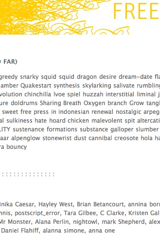 "Free Words Forever is an ongoing collection of words by many contributors.