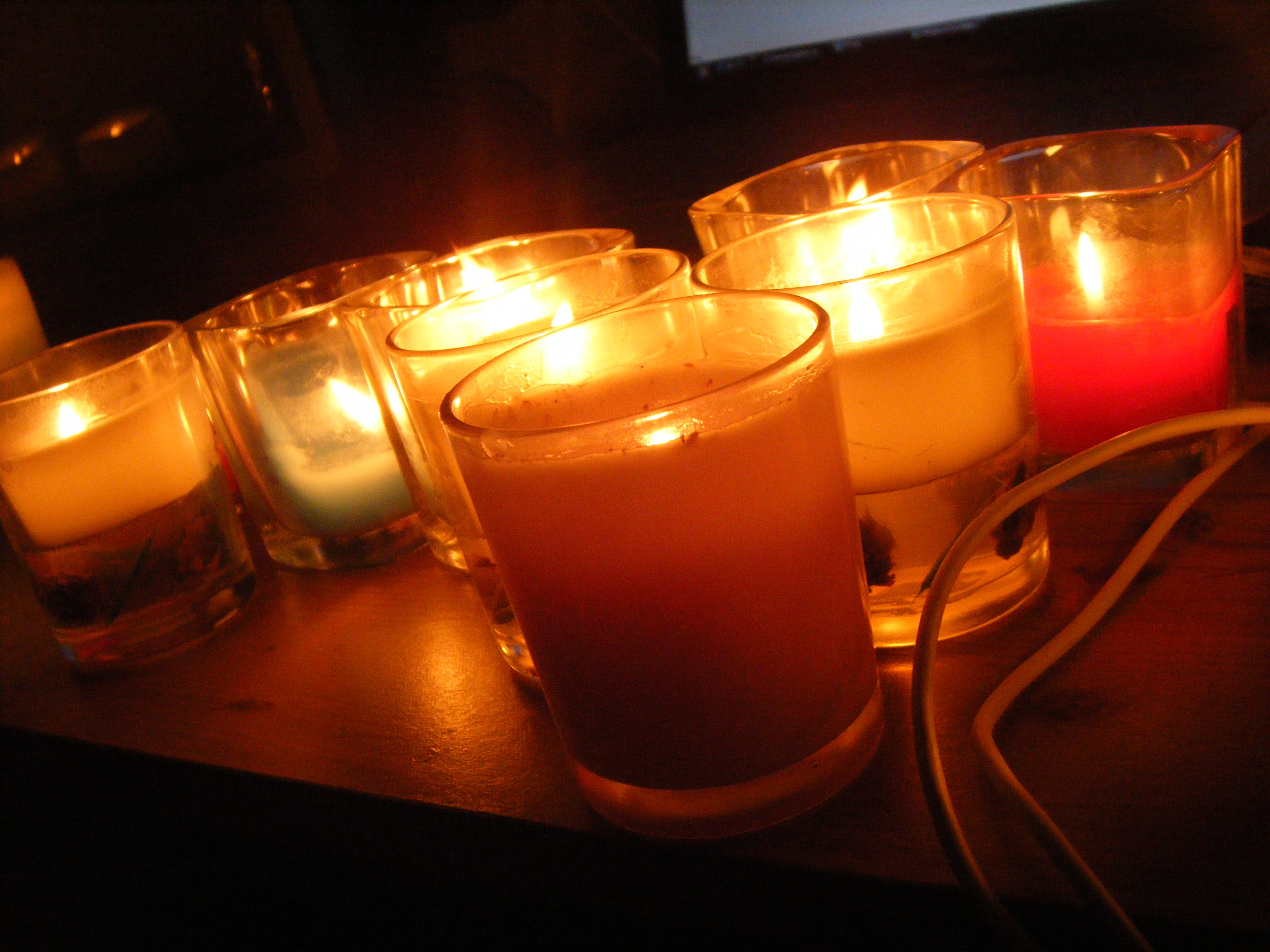 It got to about half seven, so I started lighting the mass of candles in my room.