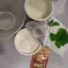 Everyone did some plushy things or sock monsters so I decided to do something different and made some soft cream. Here you can see the ingredients: curd, yogurt, vanilla, lemon balm (and apricot, which aren't in the picture because I decided later ...