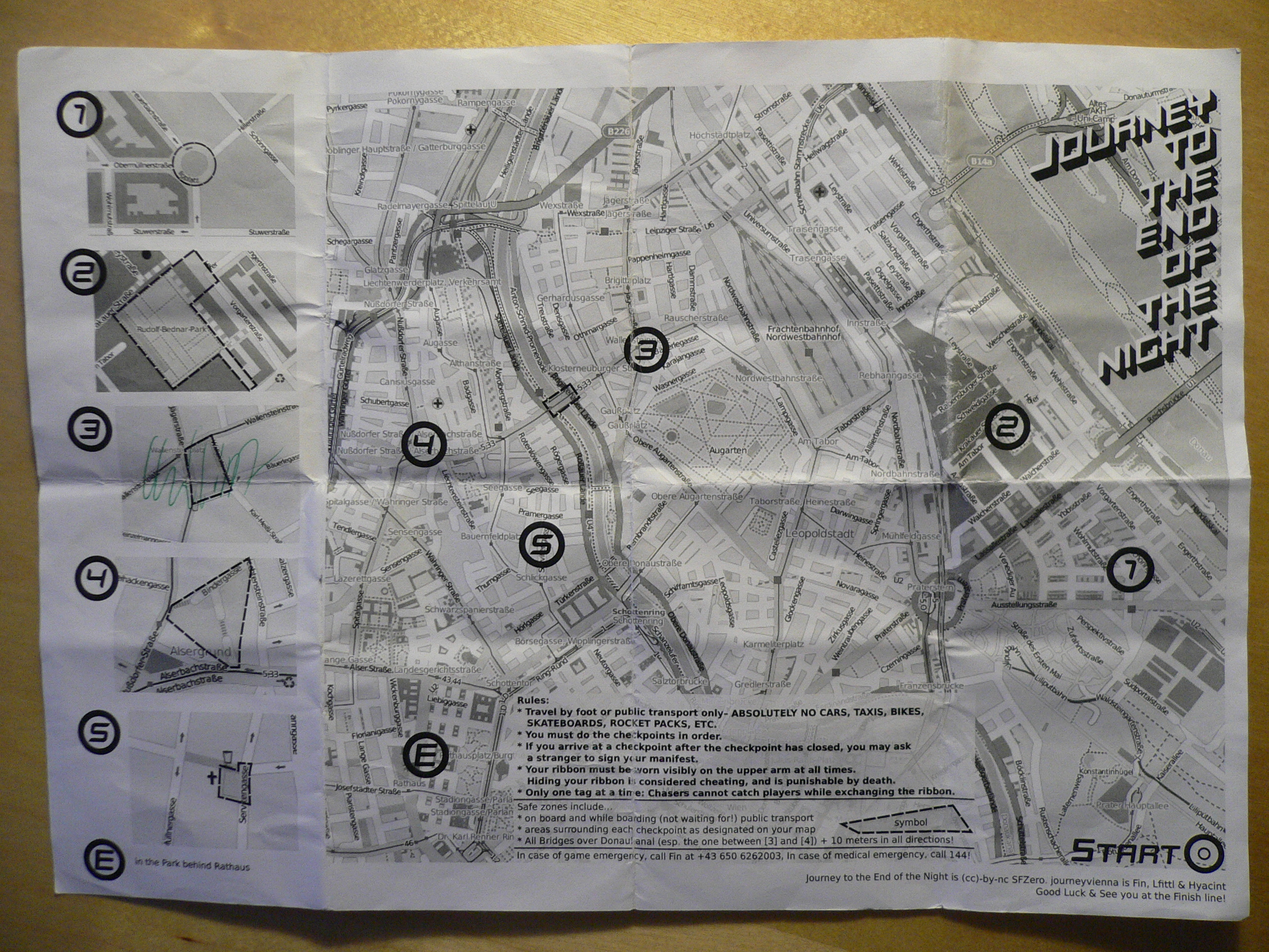 so it was friday night and i was on my way to the Prater. on the tram i met 3 other runners and we were heading to the meeting point together. i think there were about 100 people, i really didn't expect that so many people would participate! we got all got our blue (runners) and red (chasers, in case of being captured) ribbons, the maps and fin announced the rules one last time. countdown and everyone was running away from the meeting point.