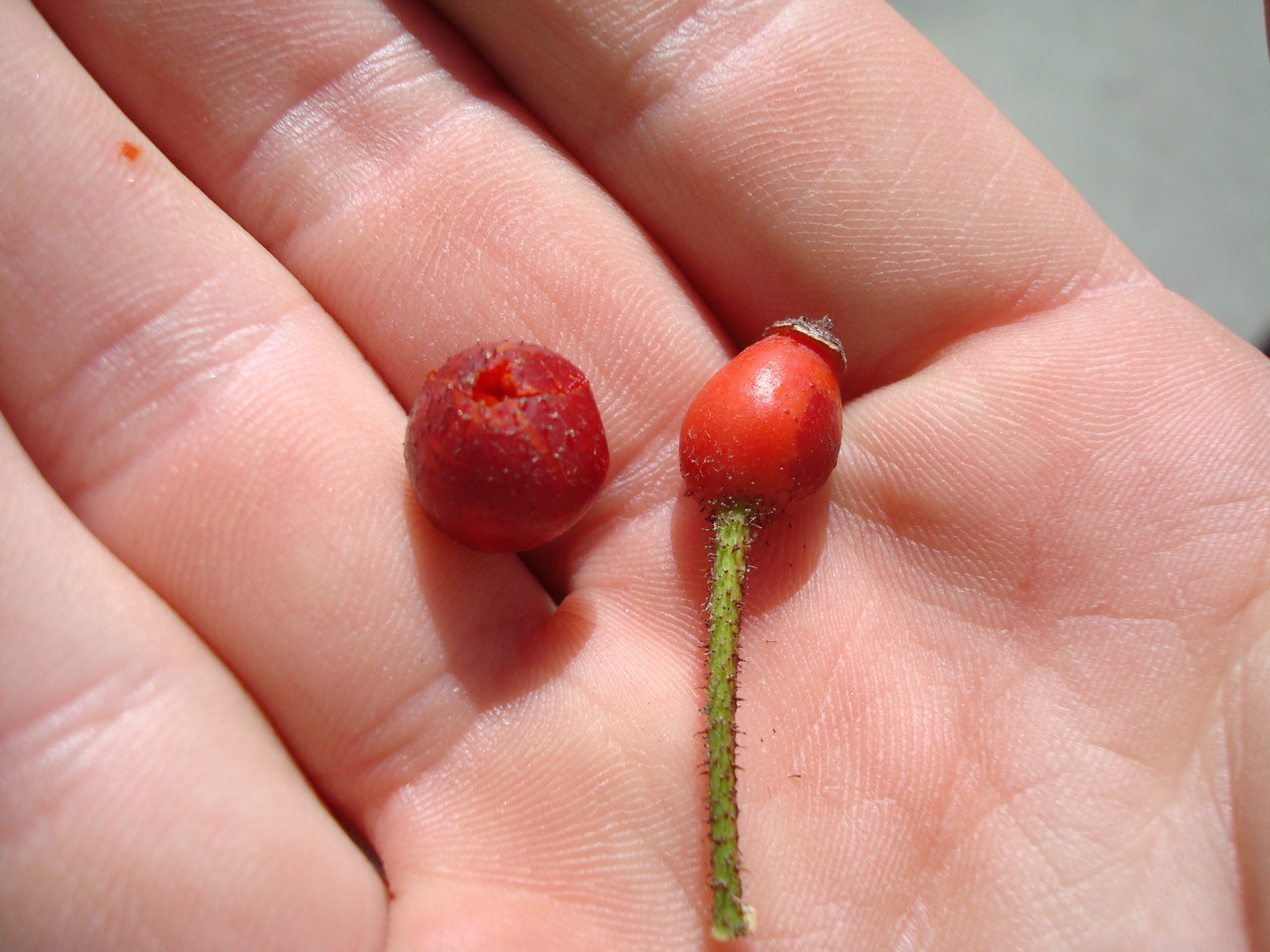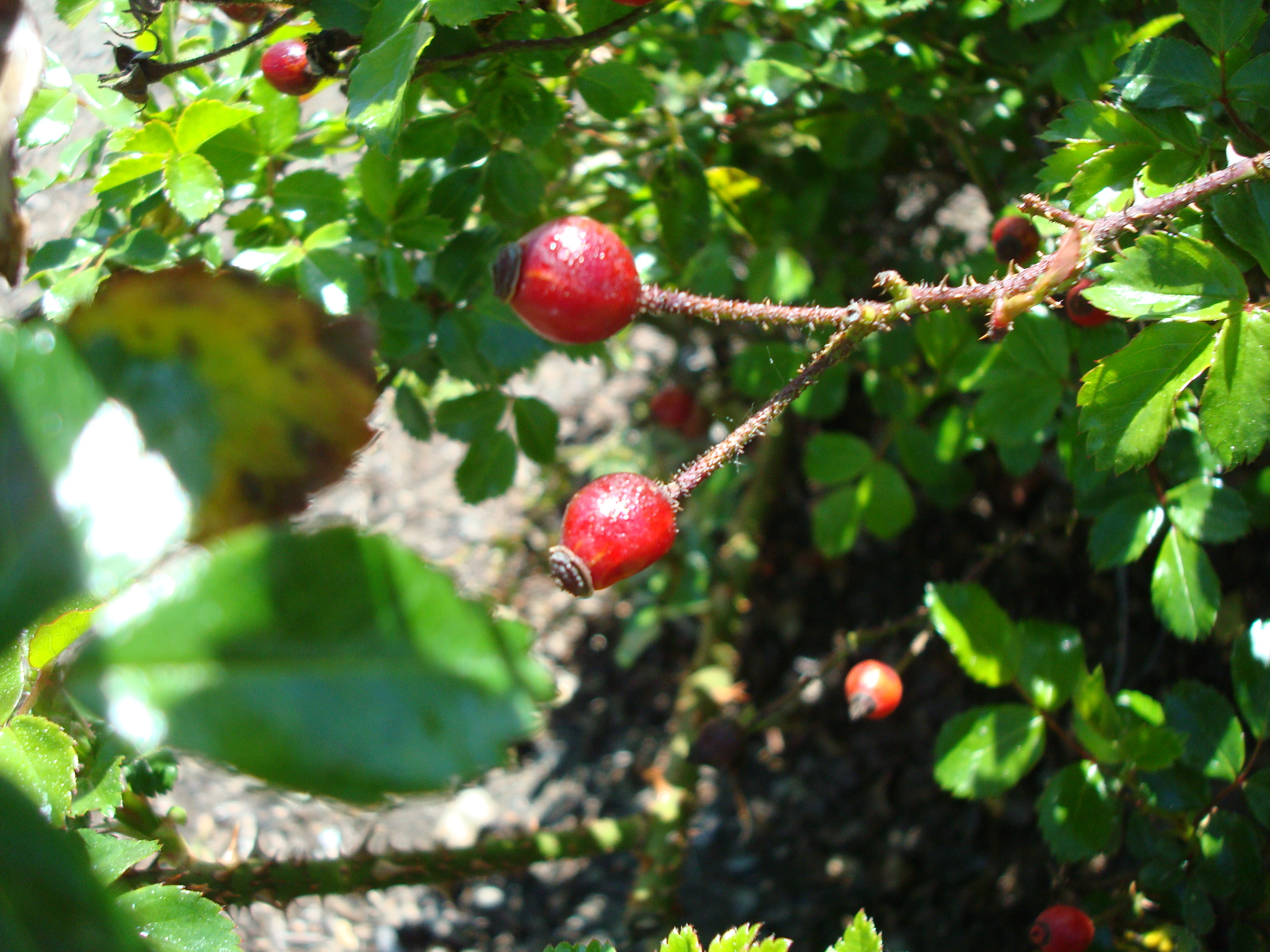+Rose Hips - near the street on the way home. Rose hips are very high in vitamin C, and can keep you alive and free of scurvy in survival situations. These were also very palatable.