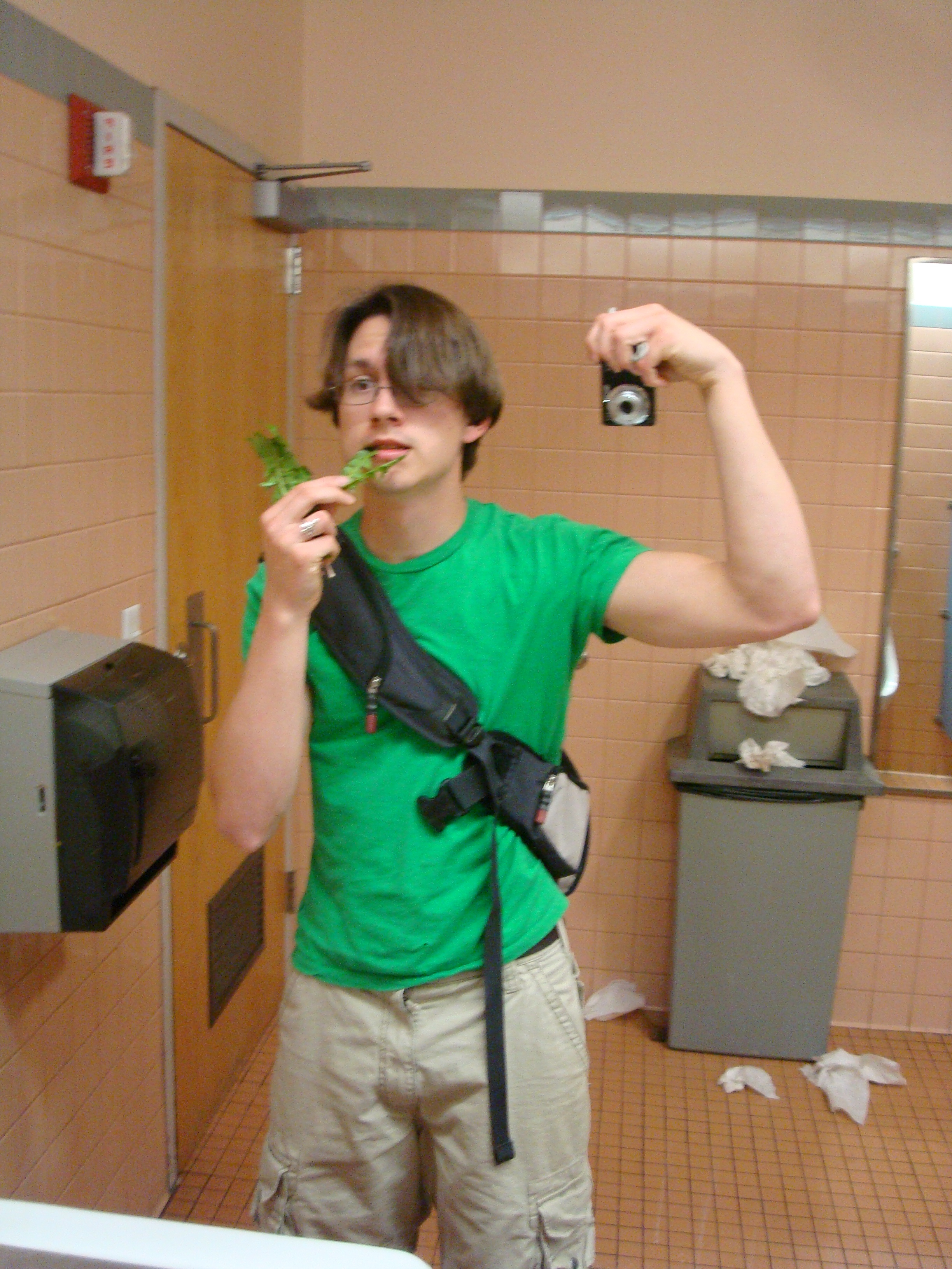 There was a guy peeing right over there (--->) as I was taking pictures of myself washing "weeds" off in the sink.