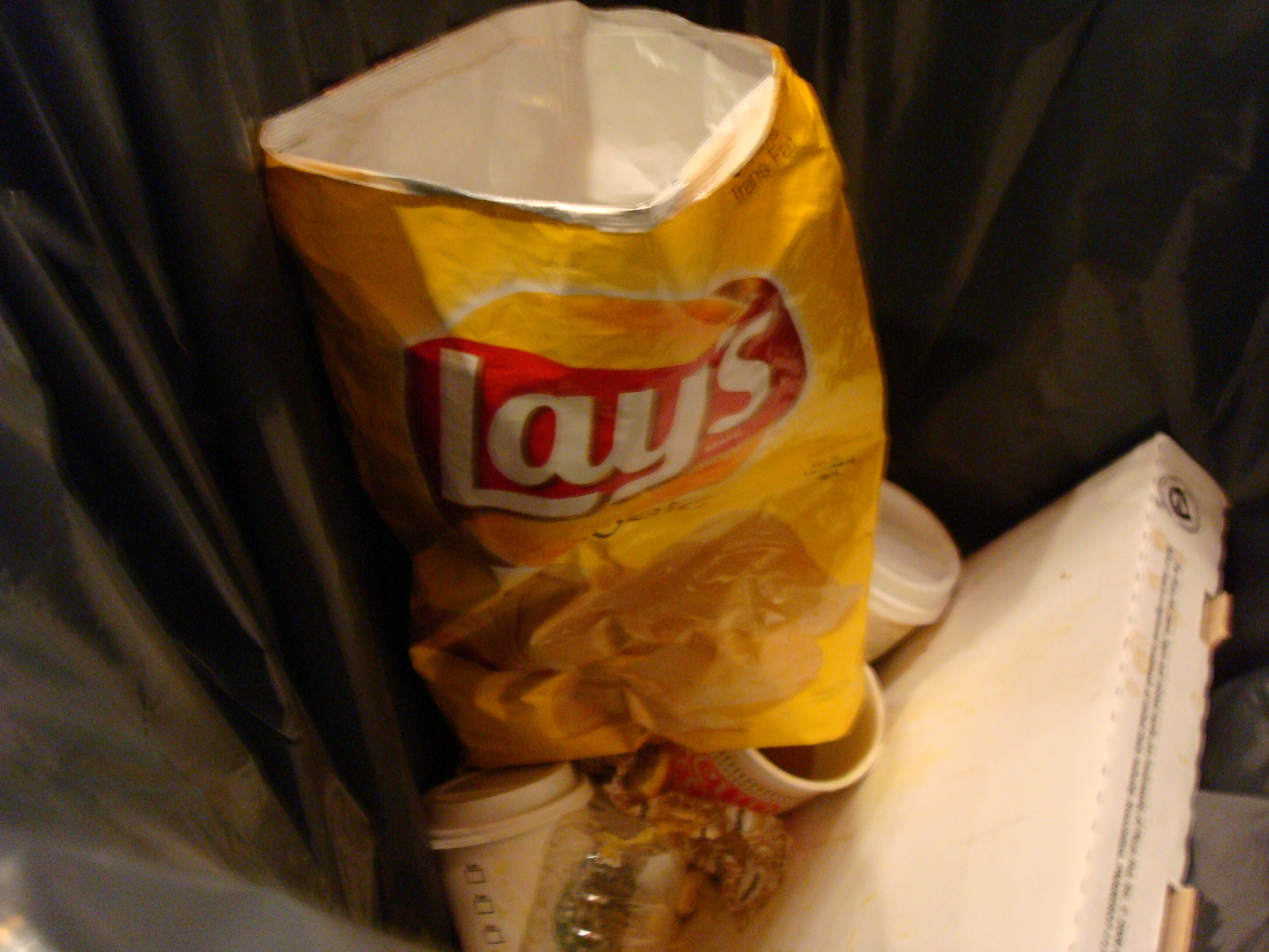 +Lay's Potato Chips - in the trash. 'Trash,' you say? 'How foul!'? Well...when you're hungry, you're hungry. And if you take a look at some of the pictures below, you may think only slightly less of me, instead of a whole lot less. Enjoy!