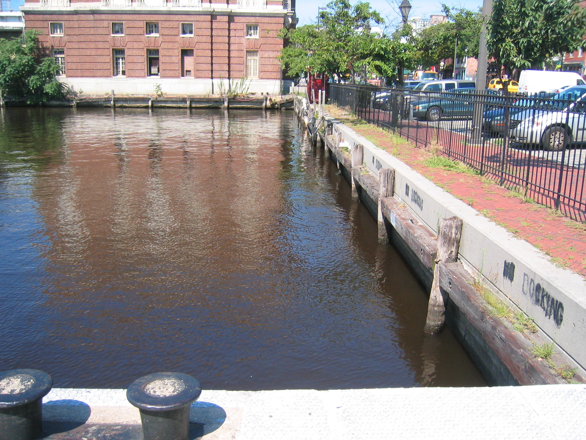 i had to get back to the street but there was a brick sidewalk in the way. luckily there was a fence within jumping distance of the water.
