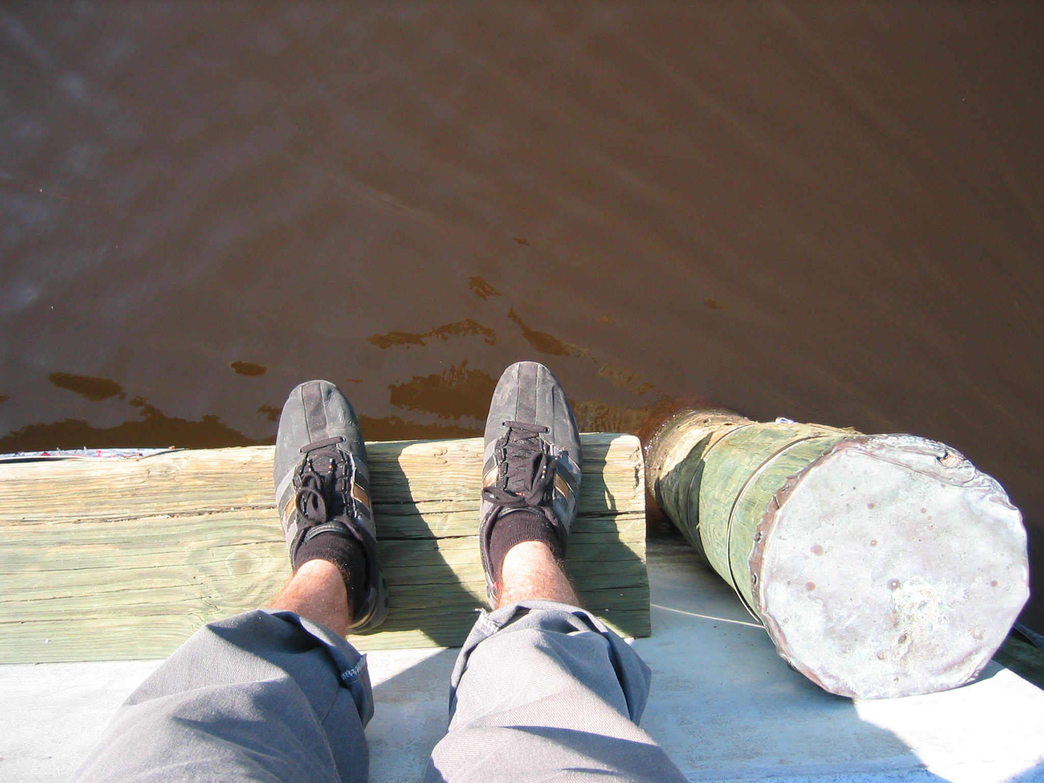 i made it to the water's edge, standing on a wooden docking strip, which could in no way be mistaken for a sidewalk.