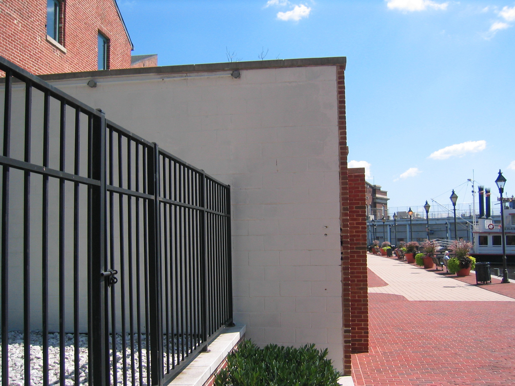 i wanted to get to the water's edge, but again, there was a sidewalk between the street and my destination. the sidewalk wasn't very wide, and would have been easy to jump across, but i was afraid i wouldn't be able to stop my forward momentum when i landed, and would continue right over the edge into the harbor. so i had to find some other way to get closer to the water.