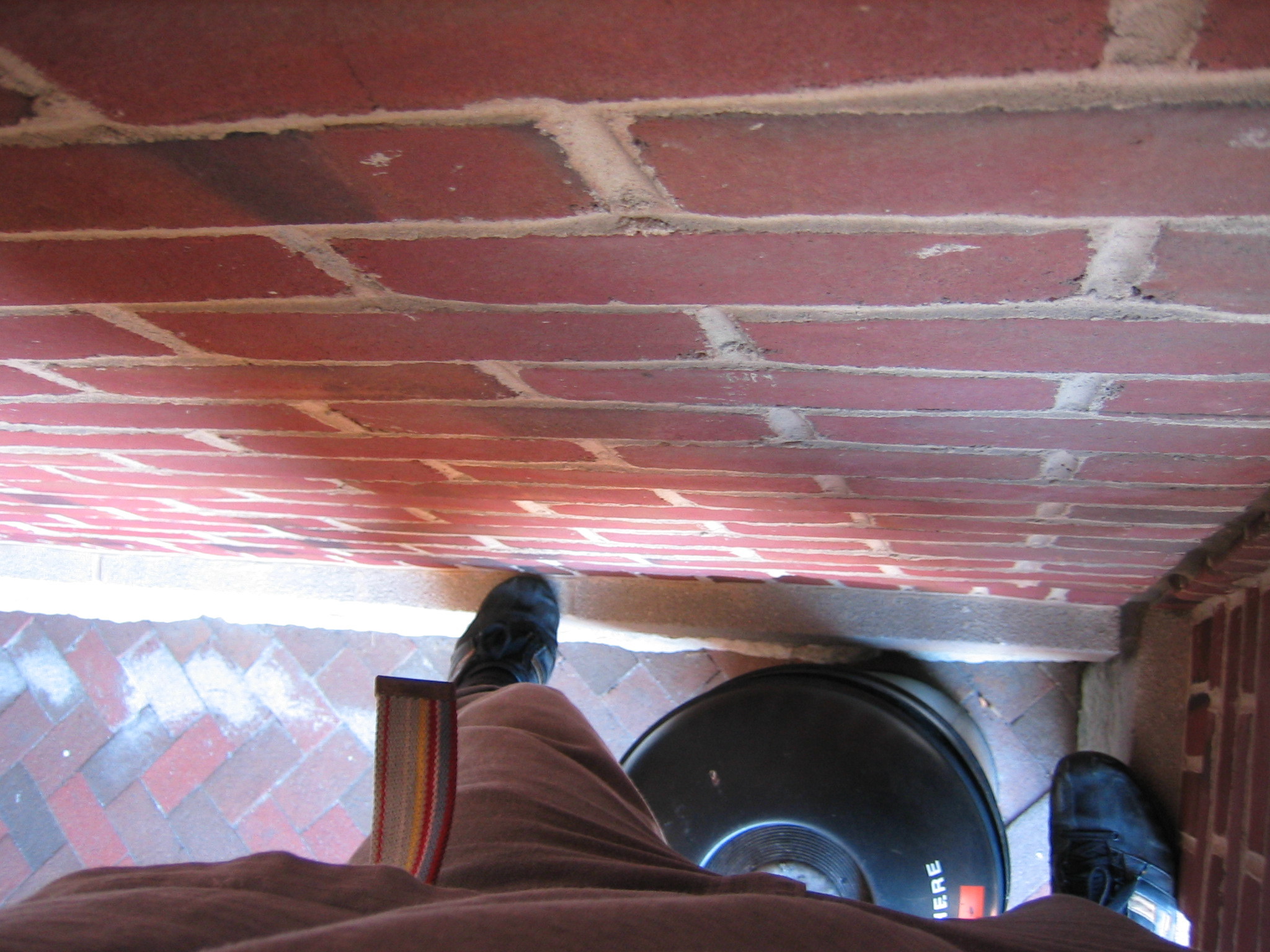 eventually i came to a bare section of brick wall that was unscaleable. i was forced to get down and run quickly across the floor of the rest of the walkway.
