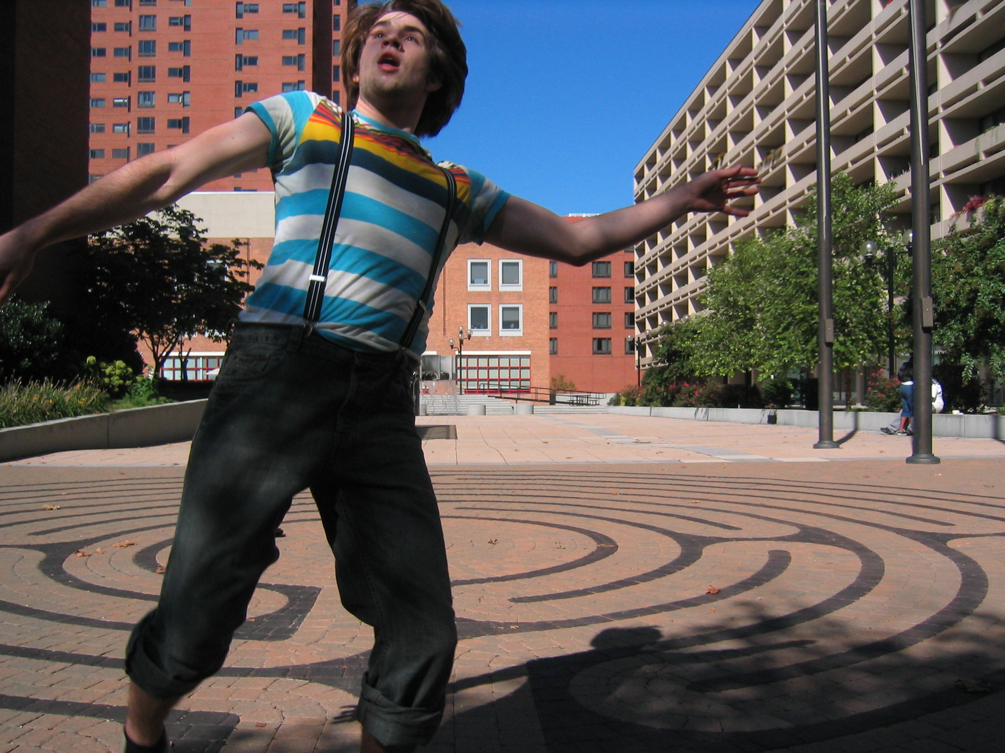 so, as my first act of play, i decided to see HOW FAST i could complete the labyrinth and make it to the center! [wearing a tuxedo jacket with tails helps me run fassst]