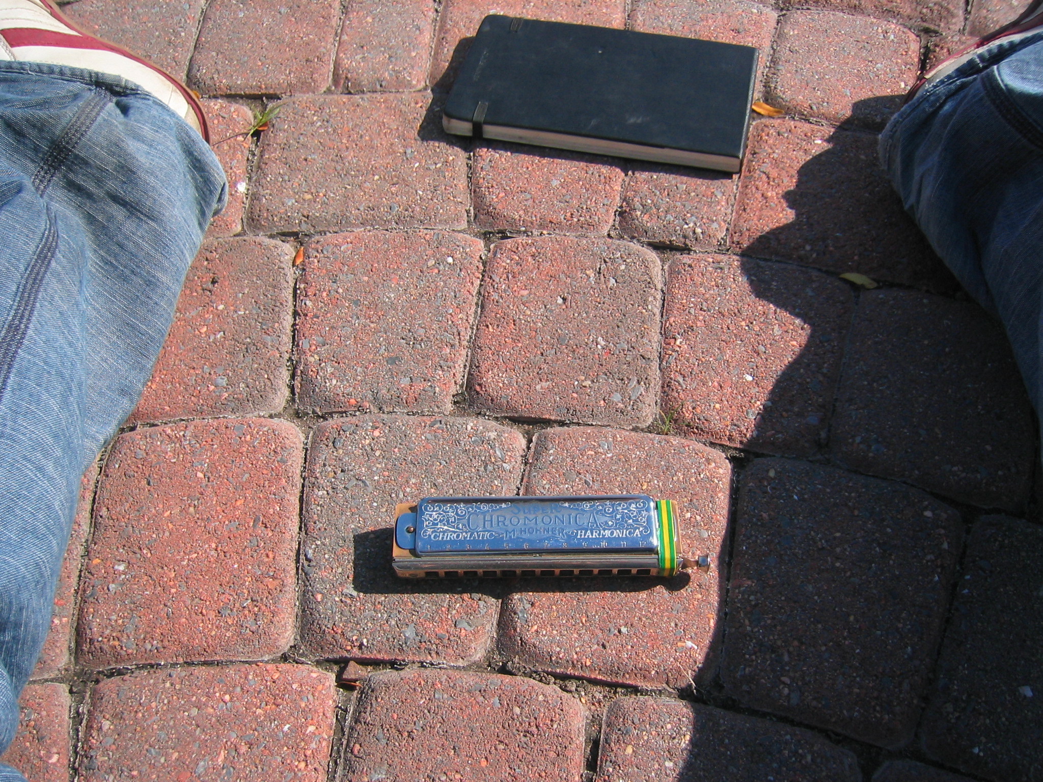 when trying to think of how to "play" in a labyrinth, i thought of two things that i play on a regular basis. 1) i play the harmonica [not exceptionally well...] and 2) i play hackey sack a lot