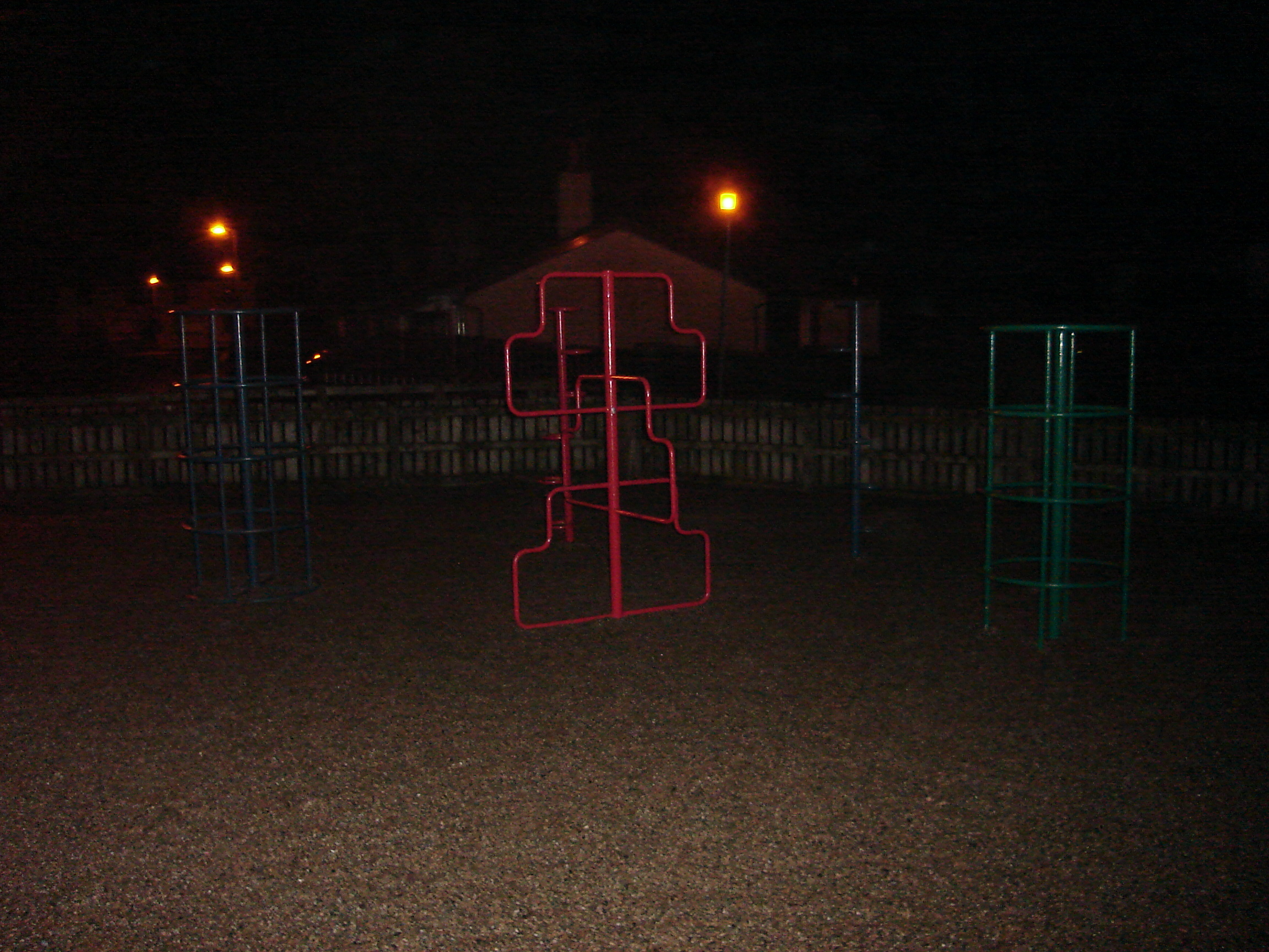 Of all places, I decided to explore the park because it doesn't fit the idea of night-time photography. Once the sun goes down, anyone who would want to go to the park would be tucked into their little beds. Parks are unsuitable for the night-time, for the same reasons you don't get daytime hookers (or you shouldn't, in any case..). The park itself is awful, plain and simple. Most parks have that sort of soft rubber ground that still hurts when you fall on it but kinda absorbs it. Ours still has stones, which is very, very easy to hide broken glass in...