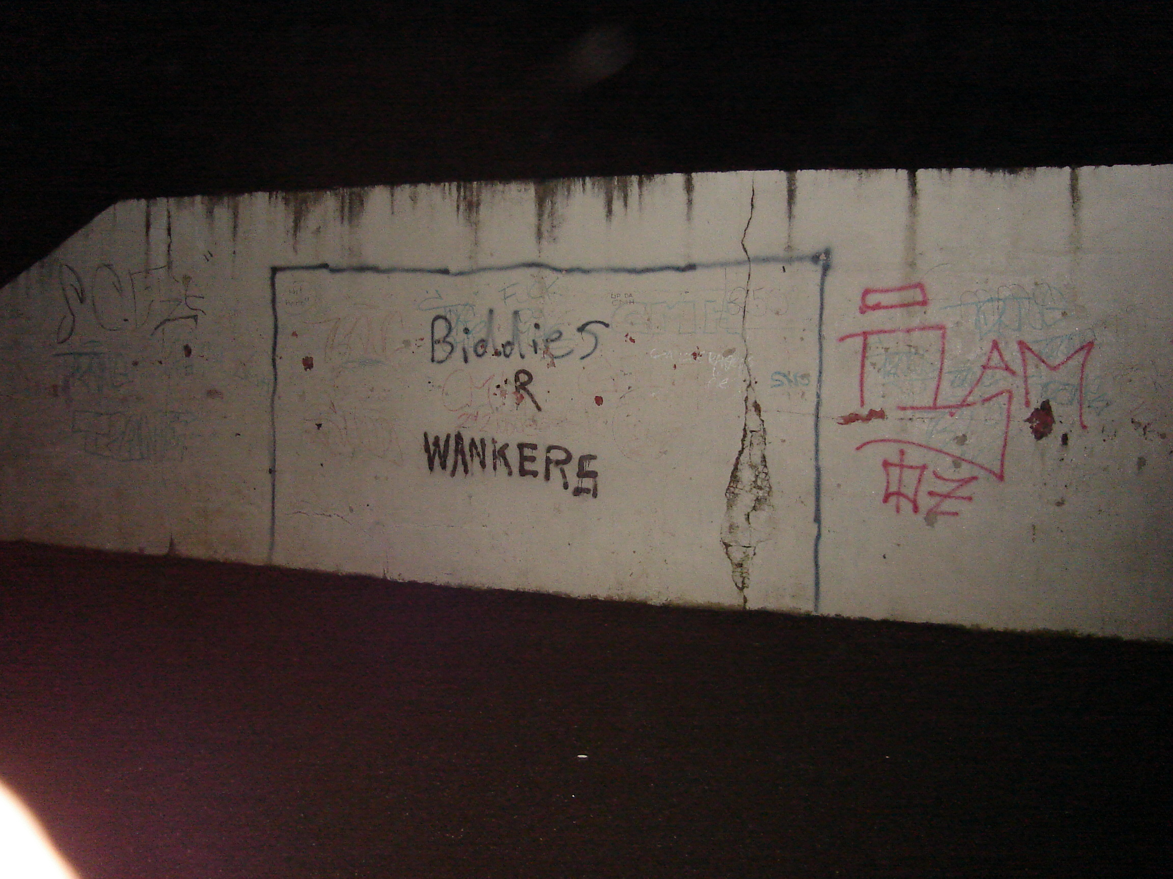 I'm personally a fan of the "graffiti wars" which seem to be going on. We have "Biddies" and "Celtic", which have been appended with "...R WANKERS" and "...R GAY" respectively. I'm personally waiting for team one to come back by putting "NOT" after the "R" in both, but after that, this game is anyone's call.