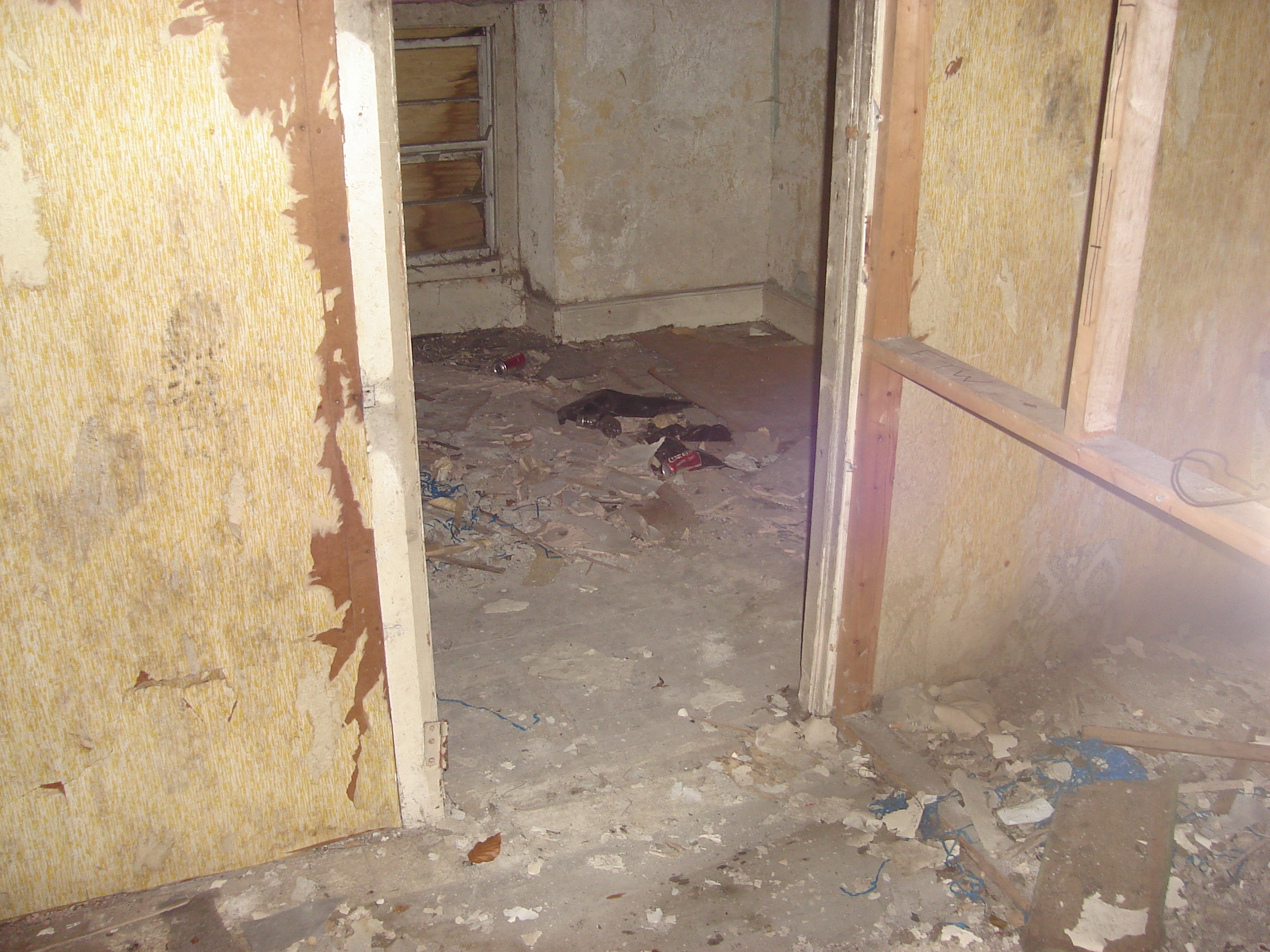After climbing in the window, I ventured through the first room, through a small corridor, and into another room.