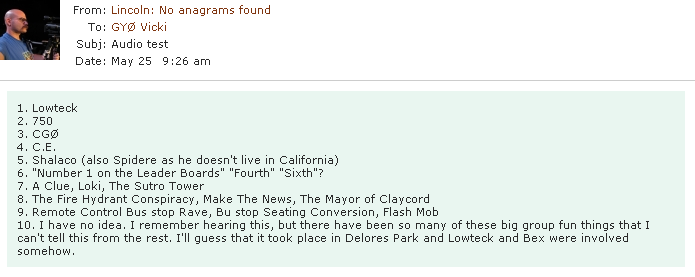 "Crap. These are hard." - Ben, on Audio Test, Question 4."Nicely done sir. Love the formatting." - Loki, on Audio Test.