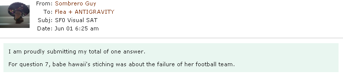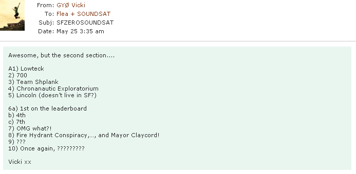 With the SFZEROSAT bar set pretty damn high, I knew I'd have to go beyond a standard question/answer paper in order to be able to bring in the votes. To this end, this SFZEROSAT came in two parts, an Audio test, and a Visual test......Oh, and it was hard.