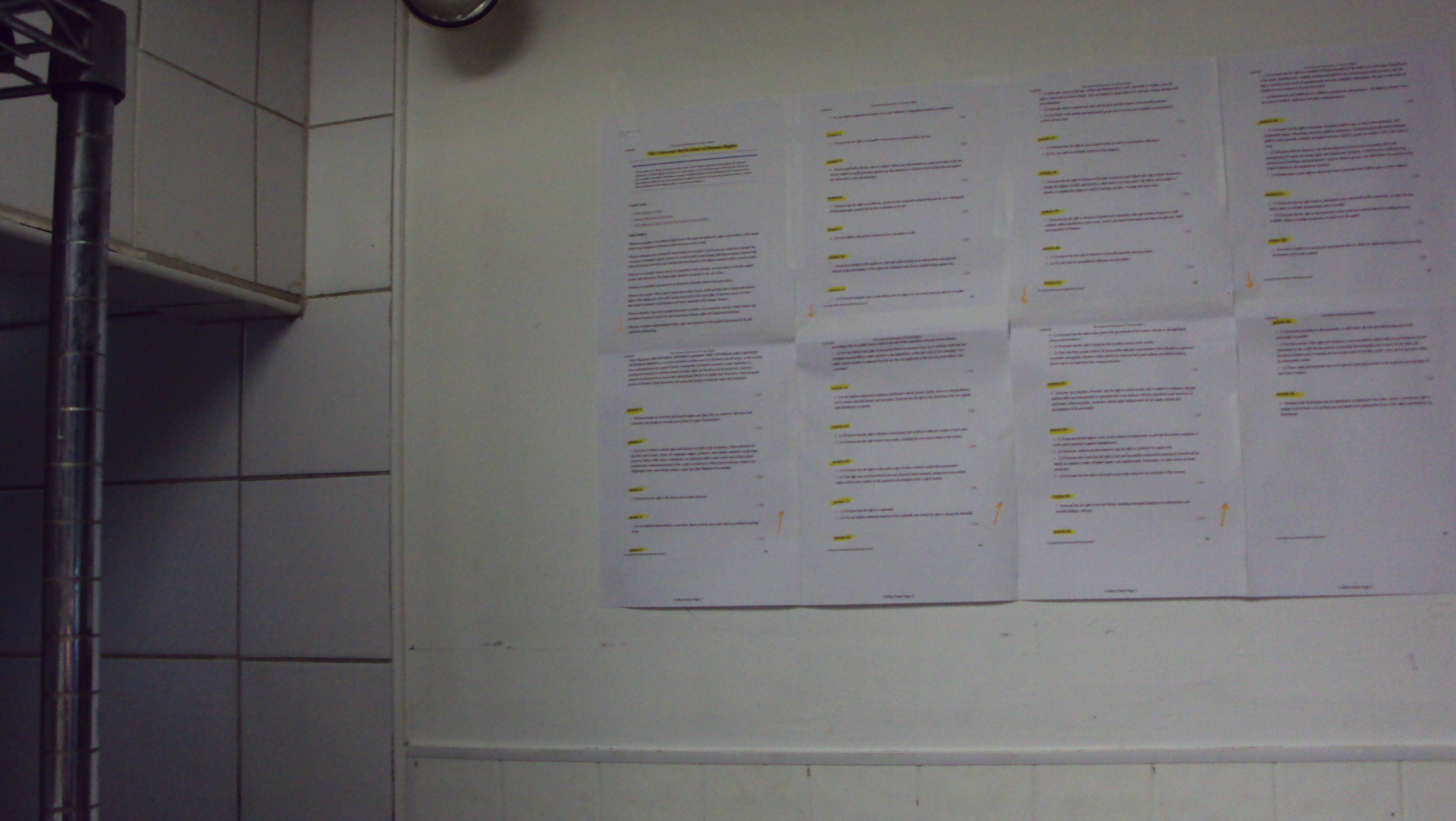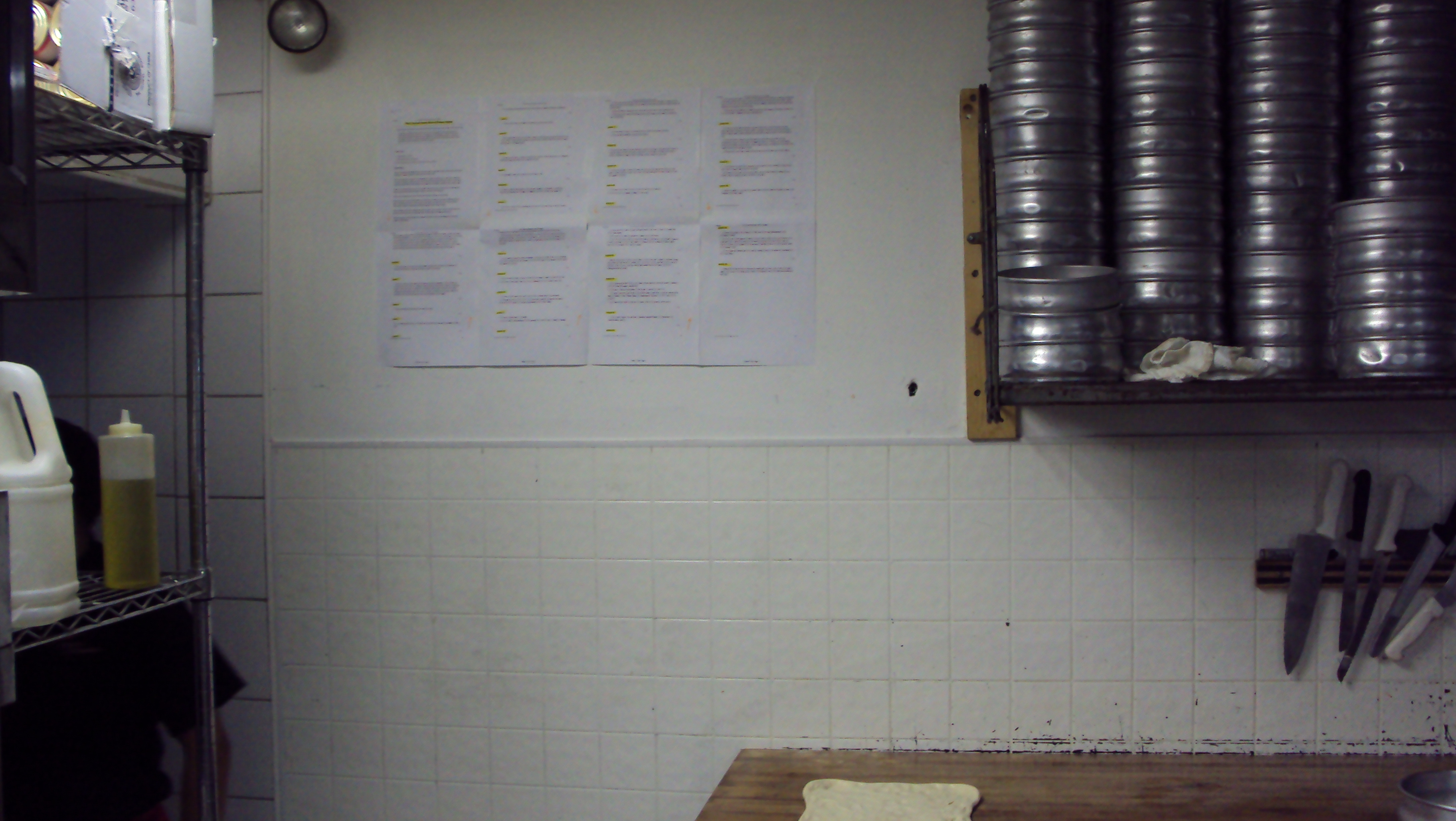 Upon entering work I posted up the papers on the wall above the counter where we make Pizza dough. My boss didn't know what to think of this and was staring at my skeptically all night. I think he believed it was some sort of trap. The next morning when the other manager came in I received an angry phone call from him about it. Apparently he was very worried that the owner would have come in and seen it and yelled at him. O'well. Total time it stayed up... 18 Hours.