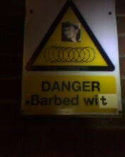 I don't think the roll of Barbed Wire in the warning triangle makes for an effective sign personally.