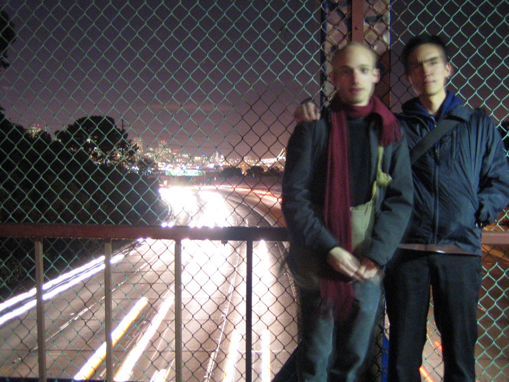We walked several more blocks and found the overpass. It's a very beautiful place... the cars are like river rapids thundering by underneath you.