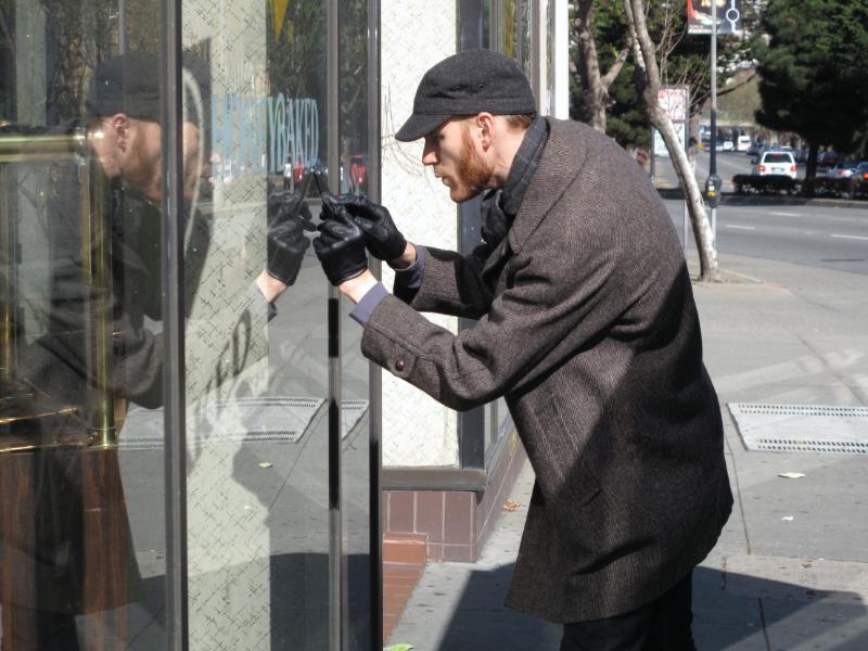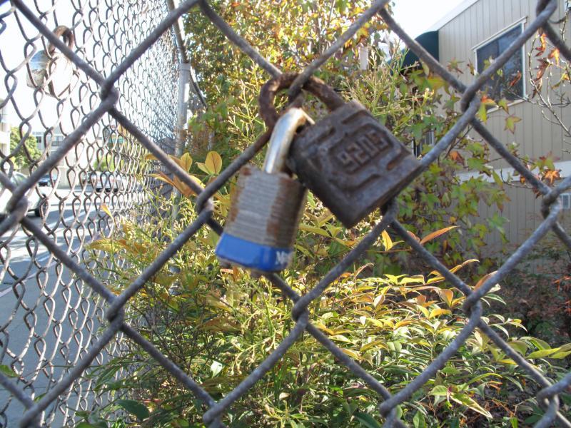 From there we traversed the cross walk to the South West corner where, to all intents and purposes, we wandered about, witnessed and absorbed our surroundings. Some of us looked for clues, while some of us dérived and some of us just noticed the world going by around us. That corner was pretty dead with hardly anything at all really... oh wait, there was a chainlink fence with an array of locks locked to locks and locks locked to fence. It was a sight that we all bore witness to, admired, and then carried on. Behind that fence was a parking lot paved with gravel and dressed with the occasional weed growing at its perimeter. On to the next corner.