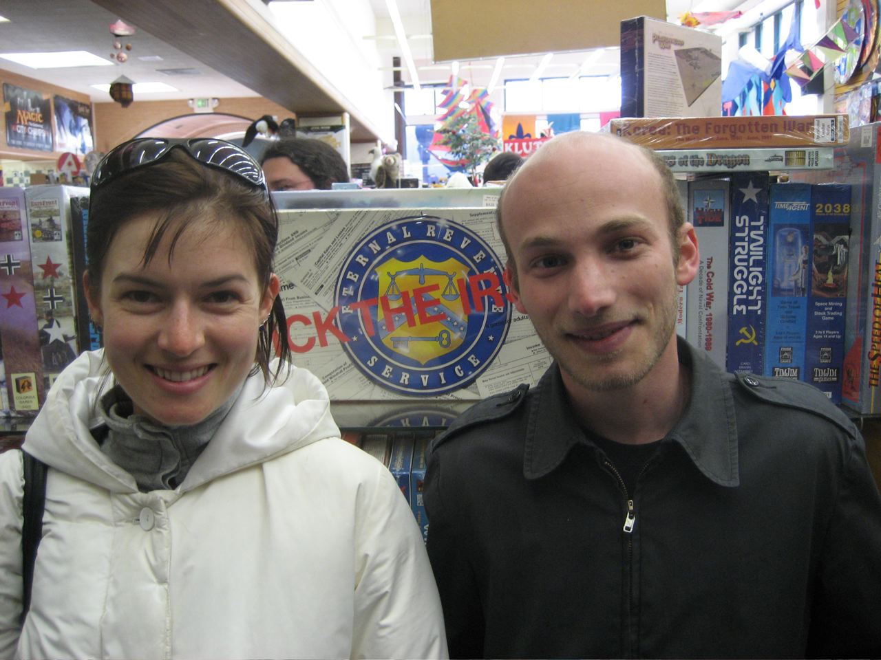 The woman who answered sounded amused by the end of the call, as if she knew. (Or am I just imagining one of you works there?) I would post the bad audio (lots o' cell phone feedback on my iTalk recorder) but am not sure how to cut out all the dead time. I asked about checking if they had a game in stock: Stick the IRS. She couldn't hear me, which isn't surprising on my phone lately. "Stick....as in twig or something....IRS....as in tax season," I translated through my bad cell phone static. "Oh, yeah, yeah, Break the IRS, we do have that in stock." "Is it Stick the IRS or Break the IRS? I don't know... a friend of mine was telling me about it." "It might be Stiff....let me check." Silence. "I don't know...it's here. ...........I don't know which one it is. I could go check and look on the shelf. I can't find it in my computer, but...." I asked if she knew how much it was. [Over two and a half minutes waiting] "I'm sorry, it seems to have... disappeared. But I did see it here on Sunday." She sounded amused by this point, unless I was imagining that part. [Why say 'disappeared' instead of that they sold it, then?] Ok, I'll check back. "Sorry," she said. We both hung up.