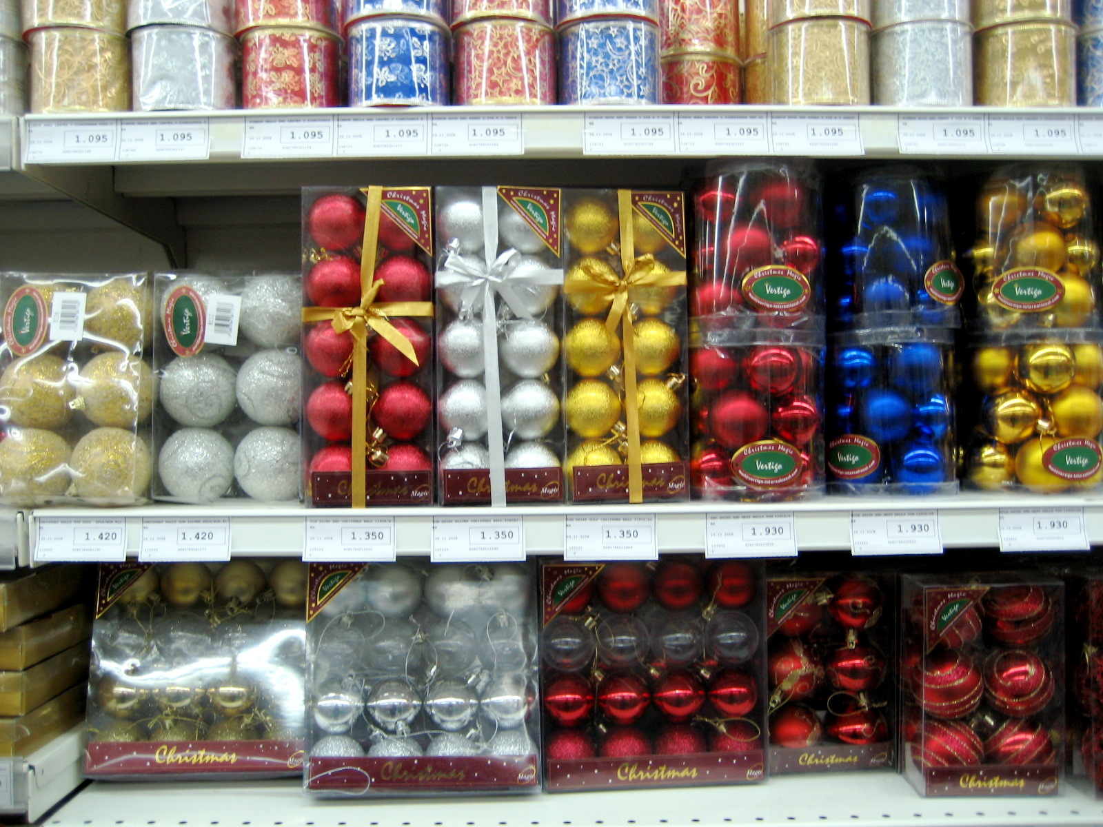 So later that week when I was at a supermarket in the MQ (Madinat As Sultan Qaboos) neighborhood, which caters to it's more Western residents of the neighborhood, I came upon Christmas ornaments!