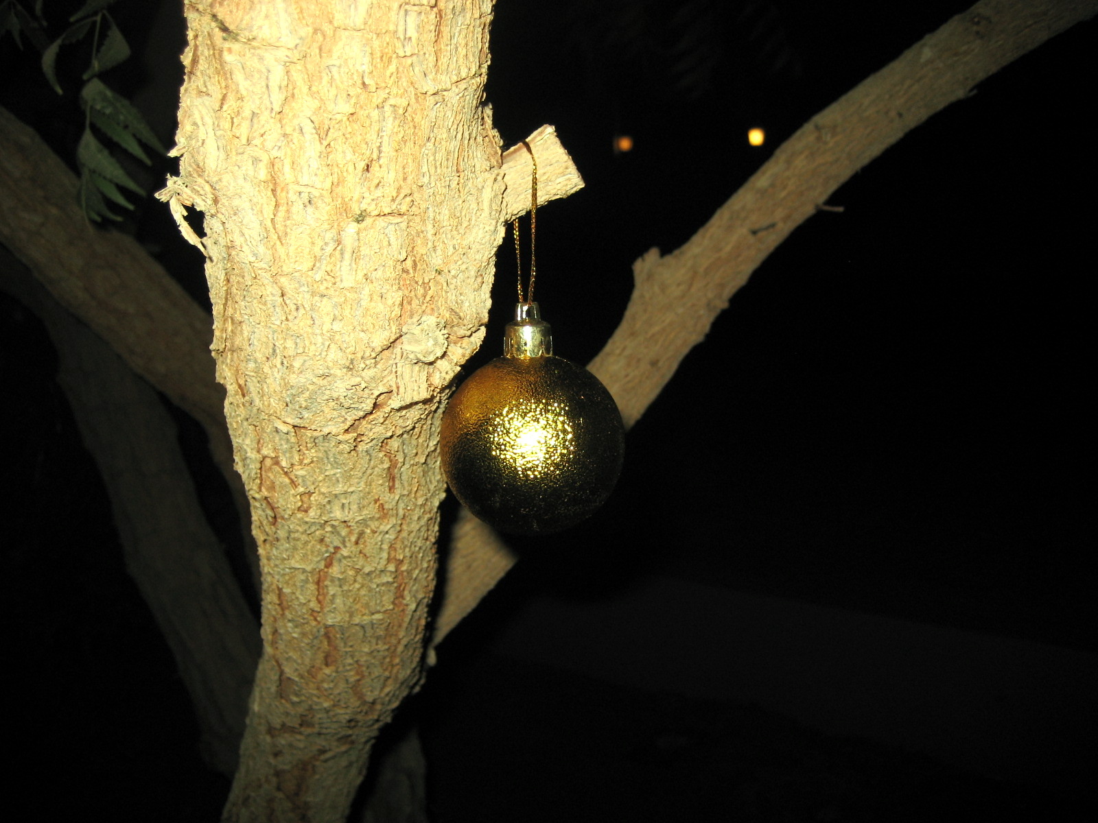 Behold.... trees!!!!!So I waited for night to fall, and that's when I unleashed my sneaky Christmas cheer. At one point a jogger passed by (he looked very suspicious of me. So suspicious in fact, that he kept jogging back and forth closer and closer trying to figure out what I was photographing in trees. Perhaps he will eventually return and find the Christmas ornament and be Zapped with Christmas-ness. :) I like the idea of that. :)