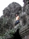 After that I made my way to the inner sanctum, where I proceeded to climb all over the rain-slick and moss-covered walls. I had a delightful time looking down and laughing at the very confused Japanese tourists (and my friend Jen, who sat taking pictures of me climbing rather than climb herself), and generally running amok. Satisfied, I went back into the labyrinth and made a full circuit of Bayon, this time emerging into the outer courtyards. I found an area where rubble was piled high enough that I could climb to the outer wall. I proceeded to Prince of Persia the SHIT out of Bayon, running along the outer wall and jumping from pillar to pillar. It was AWESOME.