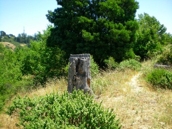 This stump is the tallest flat thing on Grizzly Peak. There are trees that rise above it, but this is the tallest standable point. I stood on it and tried to take a picture of myself on it, but it wasn't particularly clear that I was on it.