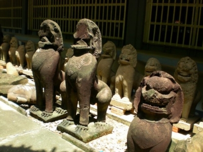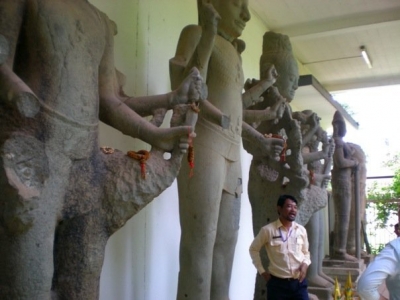 The Angkor Wat guides in Siem Reap (is he a car guide or a motobike guy?) tell all kinds of whoppers. Cultural protection isn't an excuse, it's a fact. If they put the statues "back in the temples", they'd be looted again.