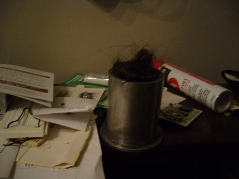 Also worth noting: I saved the hair (in an appropriately safe, industrial-looking meta cylinder), but am unsure of what to do with it; as long as I thought it was, it's still nowhere near long enough to donate. Maybe I'll use it to make my license more artistic...