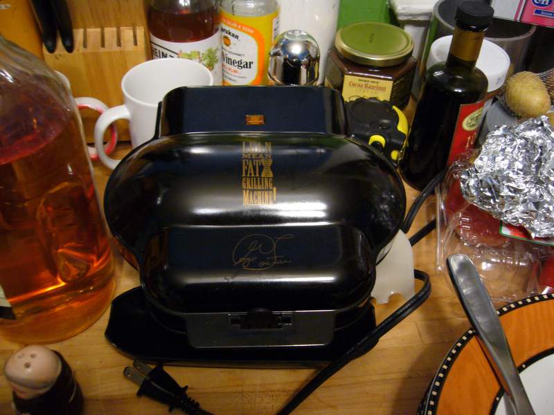 Anyway, I'm not quite sure what to do with it. It's not the right shape for sandwiches, I don't have piles of meat lying around to knock the fat out of, and even if I did, I like my grills outside where the Good Lord made them. So, whoever comes up with the best thing to do with it (and I've got a couple ideas) will win The Grill Prize - and I think you know what it is.