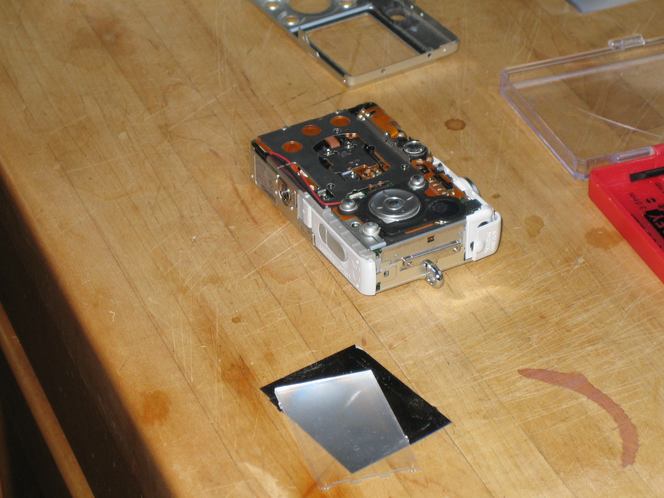 The best part may have been replacing the LCD with a mirror, though - it's subtly disturbing to bring your camera up to your face and watch your own eye approach, or to catch the reflection of your own neck in the viewscreen when you hold it at arm's length.