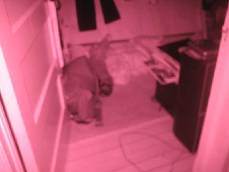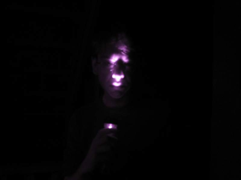 SO, I also made an IR flashlight, out of a cheap-o shake-to-charge LED flashlight from Walgreen's and an IR LED from radioshack. You can see this in the last picture (of me) - the beem is unfortunately too tight, and not bright enough, so I'm afraid the voyeurism plans have to wait.