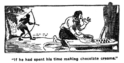So I went to work; and here I must needs observe, that as reason is the substance and original of mathematics, so by stating and squaring everything by reason, and by making the most rational judgment of things, every man may be in time master of every mechanic art. I had never handled a tool in my life, and yet in time, by labour, application, and contrivance, I found at last that I wanted nothing but I could have made it, especially if I had had tools; however, I made abundance of things, even without tools, and some with no more tools than an adze and a hatchet, which perhaps were never made that way before, and that with infinite labour. For example, if I wanted a board, I had no other way but to cut down a tree, set it on an edge before me, and hew it flat on either side with my axe, till I had brought it to be thin as a plank, and then dubb it smooth with my adze. It is true, by this method I could make but one board out of a whole tree, but this I had no remedy for but patience, any more than I had for the prodigious deal of time and labour which it took me up to make a plank or board. But my time or labour was little worth, and so it was as well employed one way as another.