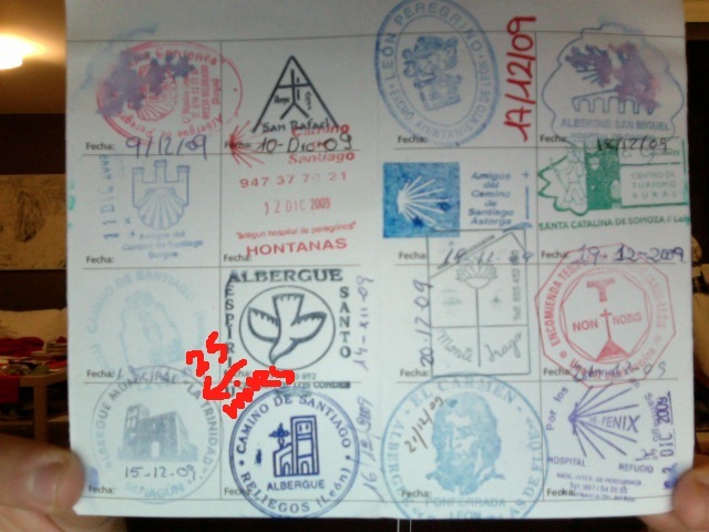 Those last two stamps make all the difference. There´s a little note up top from a really cool hospitaliero I met in Sarria, but it got a bit of water damage. It rained like HELL in Galicia. I think it probably rains in hell. I think it probably rains in hell all day every day, except it stops for about fifteen minutes every hour or so to give you a chance to dry off so you will be more miserable when the rain comes to fuck you up the ass again. But yeah, this is the end of the Credencial.