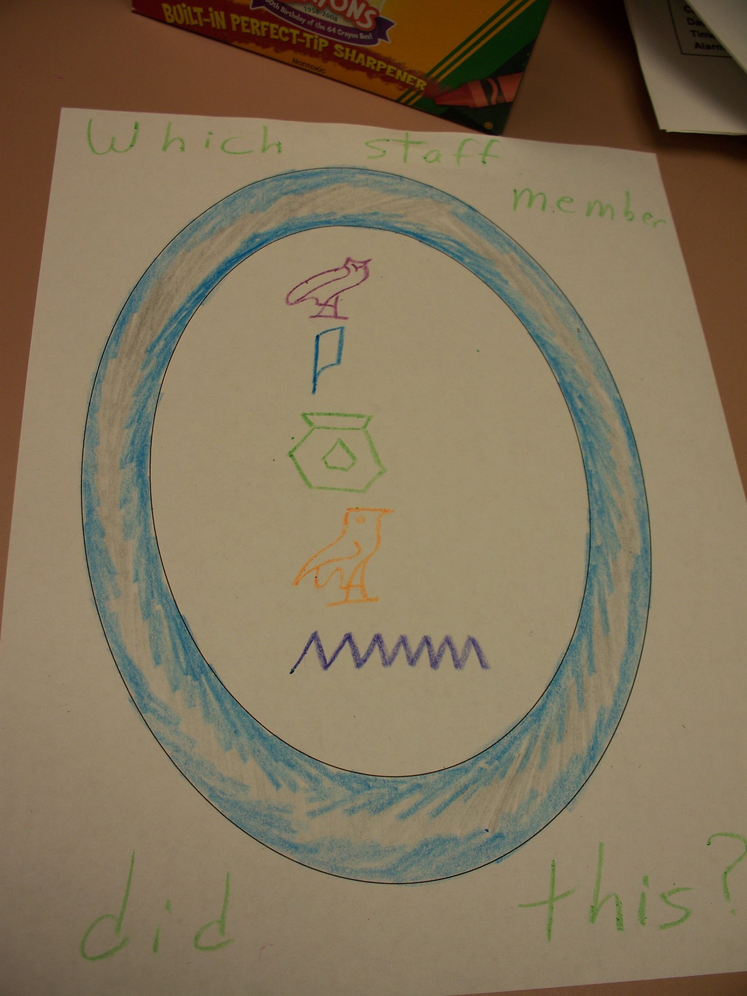 I work at a public library, and we're always looking for ways to get our patrons involved in different activities. Recently we became part of a collaboration with our local art museum and science center to promote a display about ancient Egypt. As part of the collaboration, each branch of the library was asked to set up an activity that somehow related to ancient Egypt. I thought it would be a perfect chance to provide my patrons with a public art opportunity!