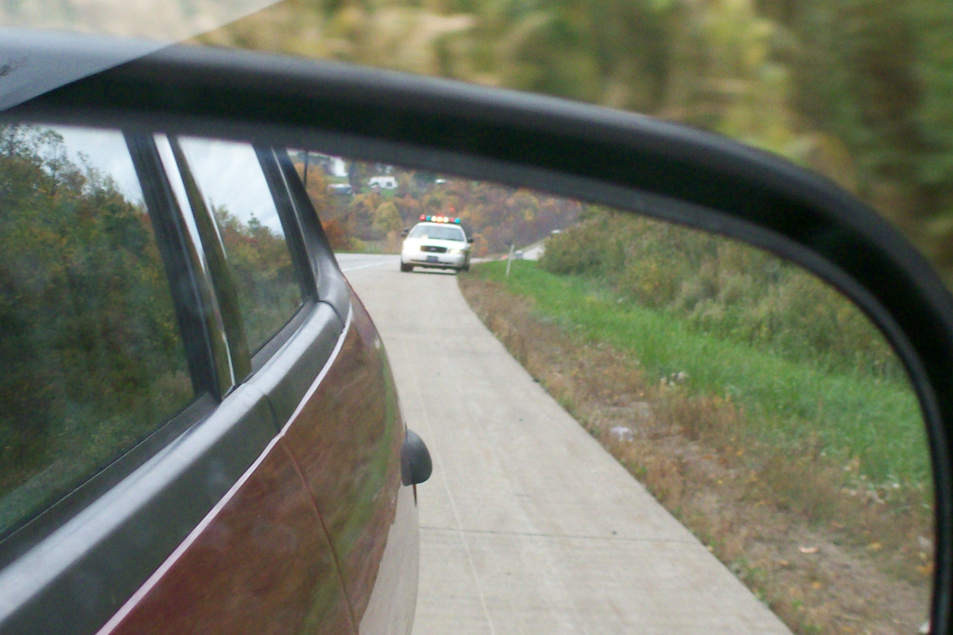 Apparently when the officer ran our tags, he mistook a O for a D, which made him think our registration was a year out of date. After a brief moment of panic on our part, he rechecked the registration and the license plate, got it right, and sent us on our way. It was all we could talk about for ten minutes.