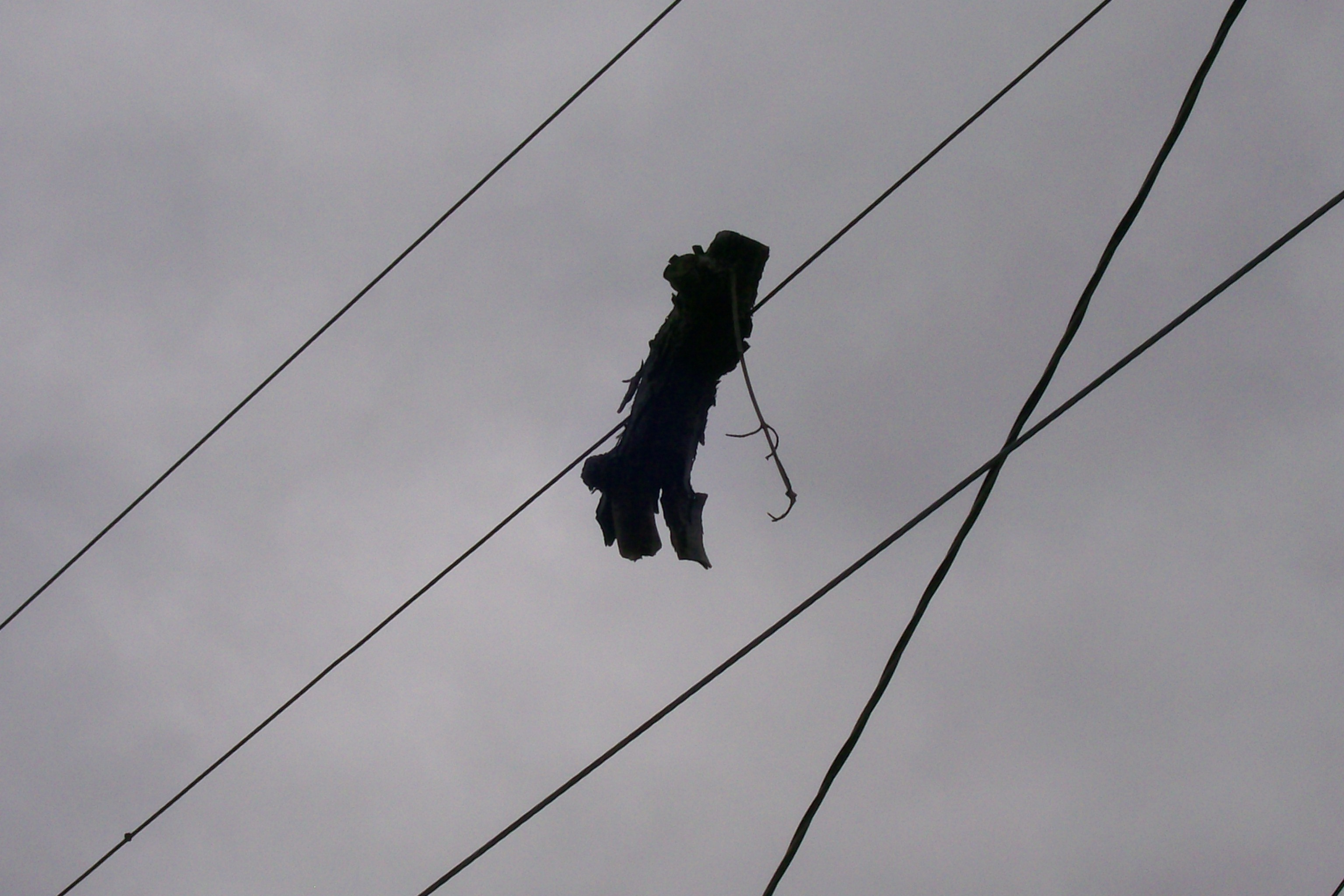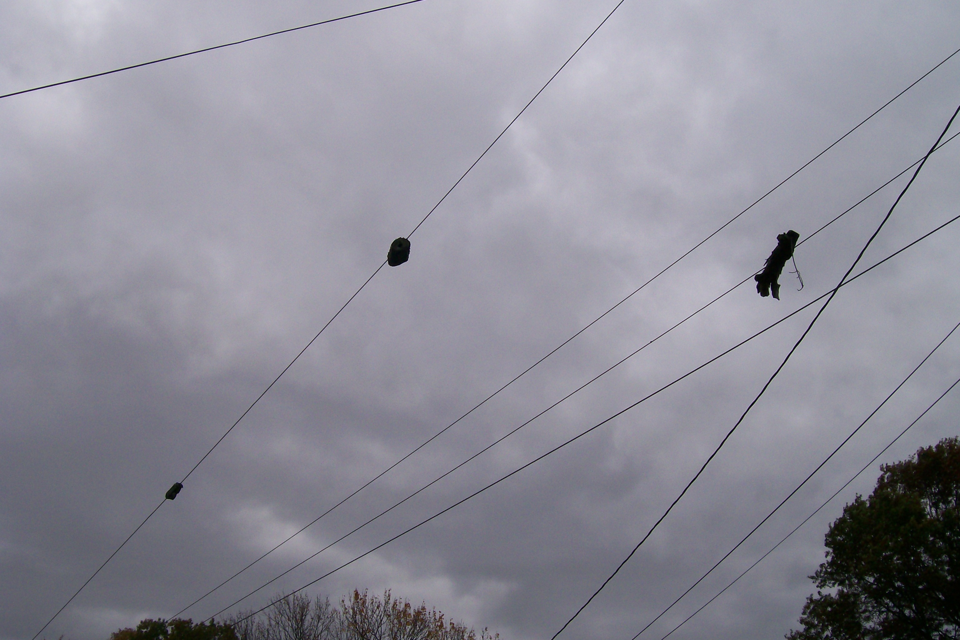 After finding a place to park, we took care of an errand in town and decided to walk around looking at houses for sale. There's a good chance we'll be moving to this town in the near future, so we wanted to look at possible homes. During this two hour, several mile walk, we saw plenty of interesting things, including logs stuck on power lines...