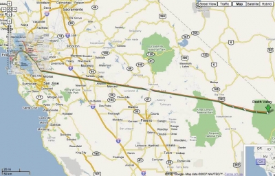 Here we see the orange and green lines running well past their previous final stop at the Fremont station and sailing in bee-line formation across the Golden State, departing with all their guests at Death Valley.