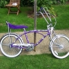Started with a girls lowrider bike. Took the mudguards, chain guard, stickers and brakes off. Retrimmed the saddle with Rolls Royce Phantom leather in "Cacau" Brown. I work for the company that makes the seats for the Roller, not many Phant...