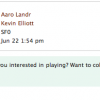 The player Kevin Elliott signed up at the end of May 2006, friended Rabbit and I and never logged in again. I don't know Kevin Elliott all that well nor have we met in person. He lives in the Bay Area as far as I'm aware and I thought he might have a...