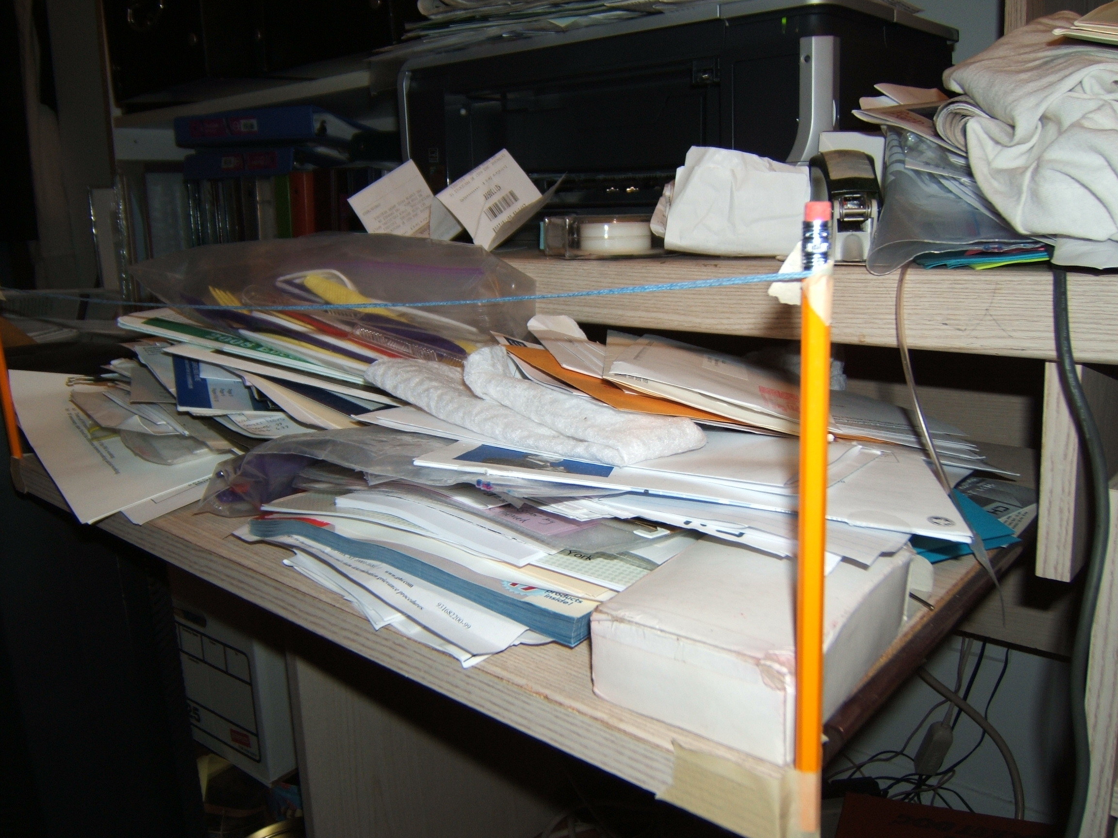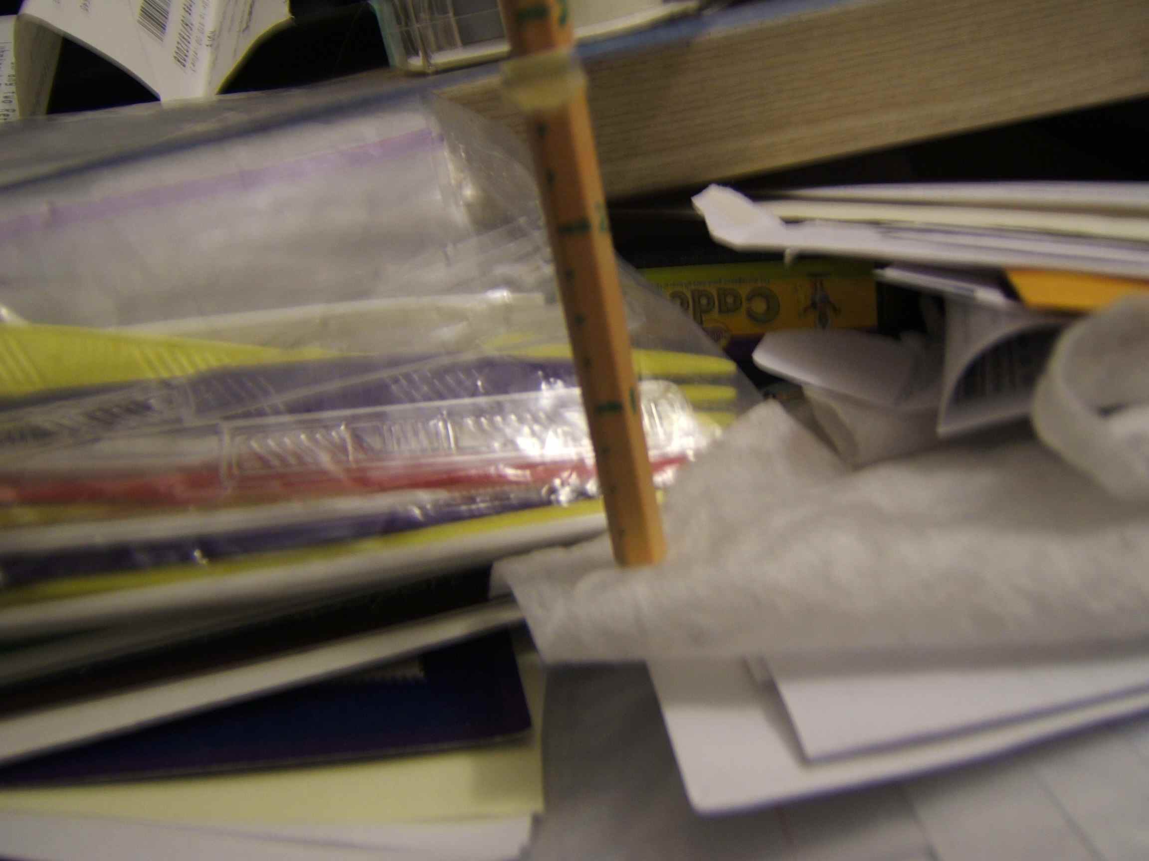 The first step was to get my tools ready. My original plan was to use something thin and pointy and poke down to the solid surface beneath the shifting piles. Clearly, the T-square was not going to do the trick.