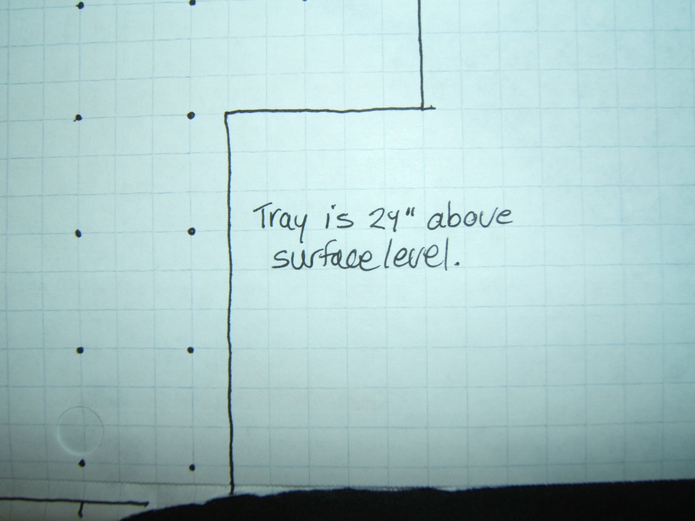 Then, I measured from floor to shelf to get the lowest elevation measurement. I ended up considering the shelf surface "0', so I never used this information - but I did record it.