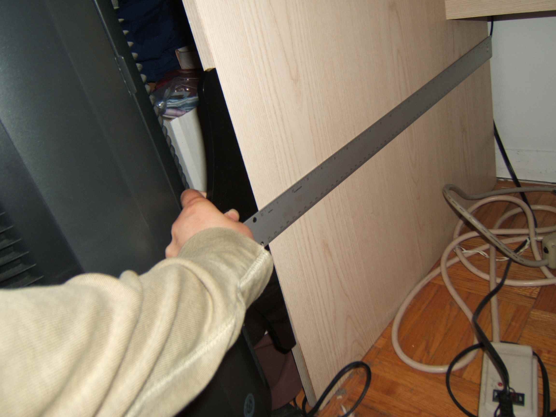 The final line across the keyboard shelf was right up against the desk, so I moved the ruler outward and measured behind it.