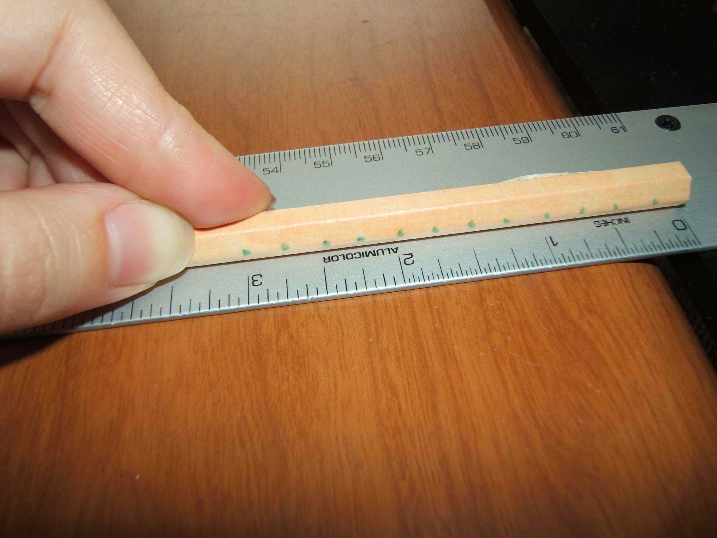 Then, I used the ruler to add markings to it. I decided to mark every quarter inch.
