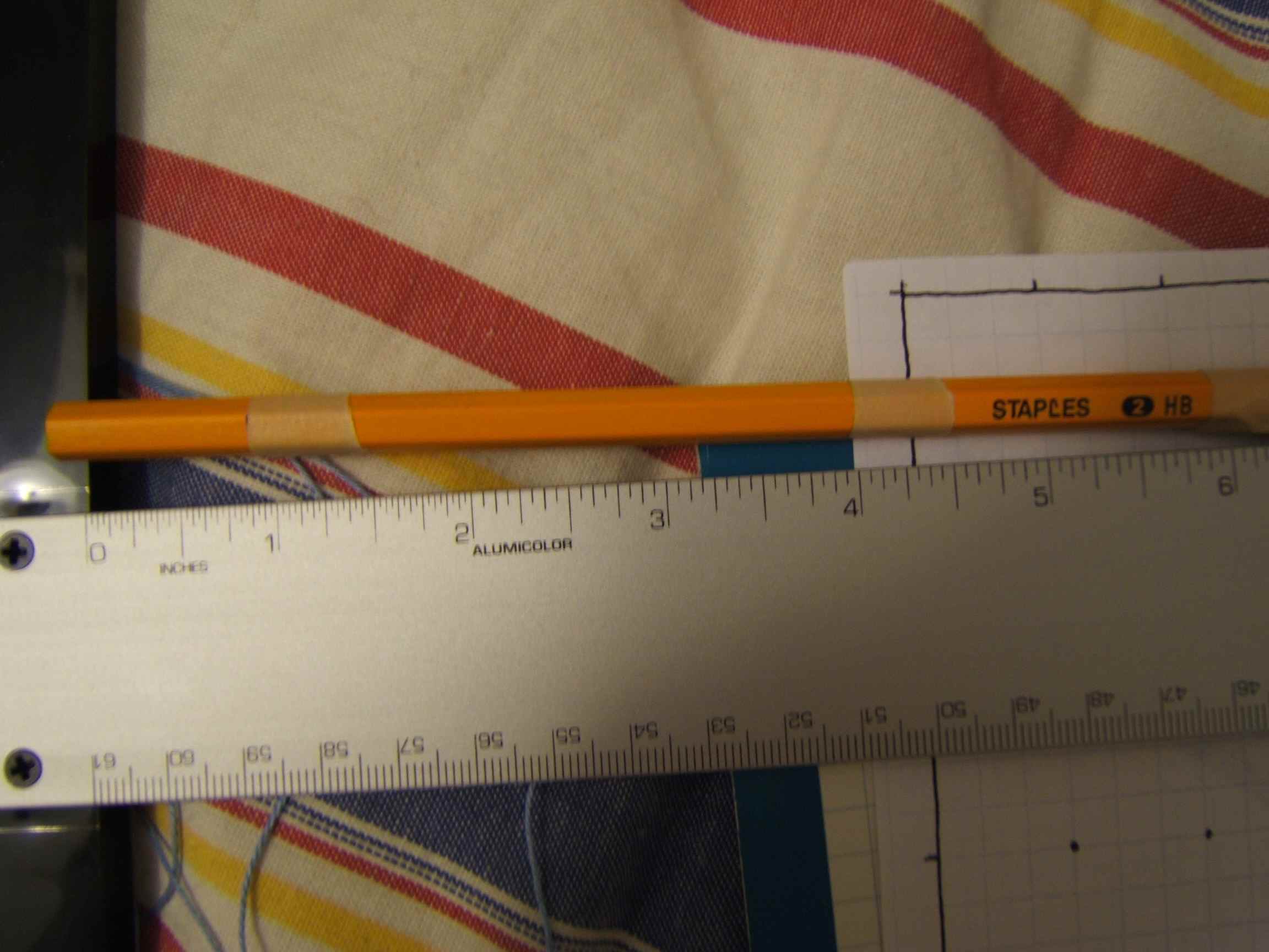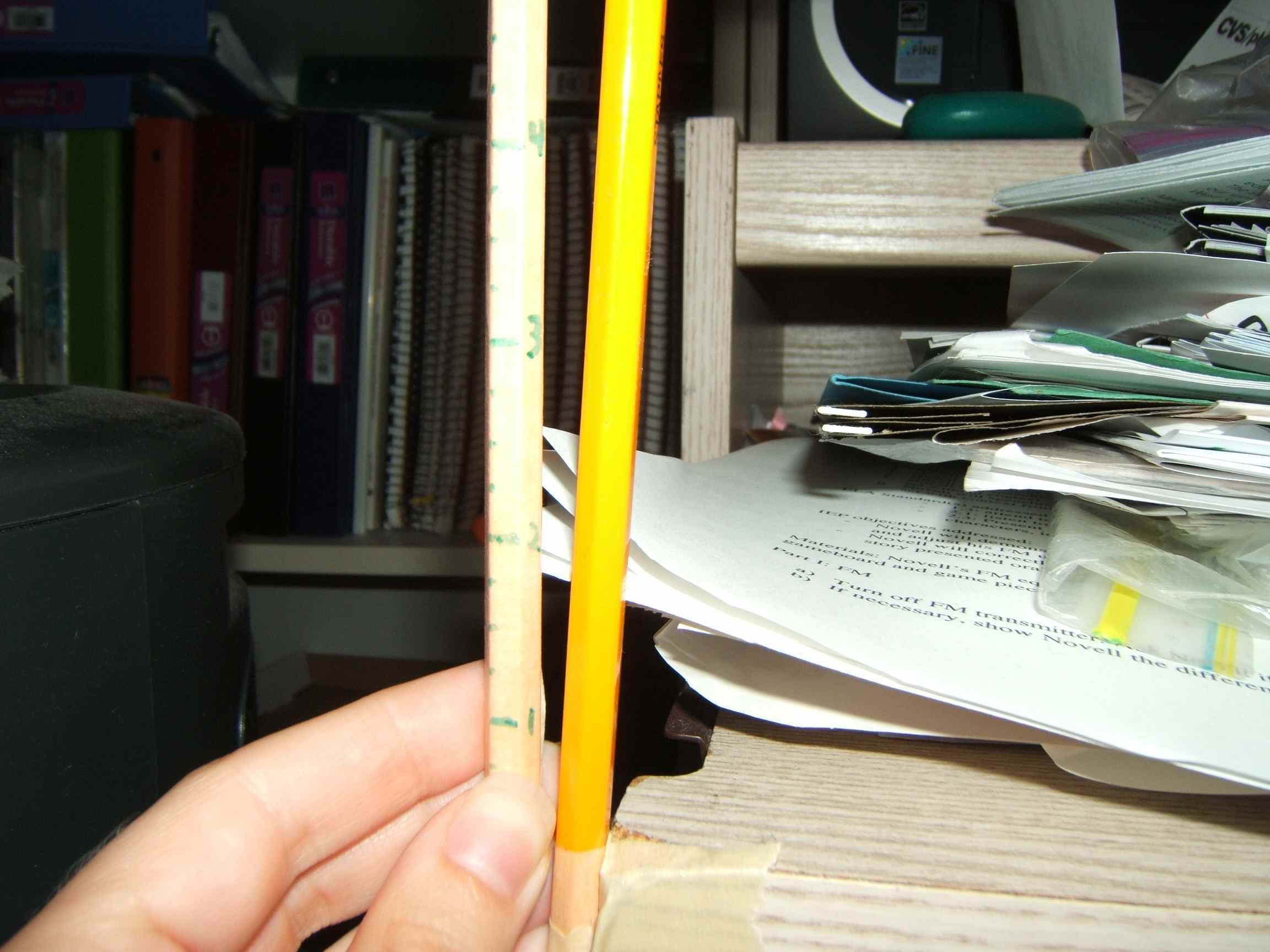 Unfortunately, I had neither chopsticks nor knitting needles, so I had already planned to use one of my pencils. In order for the pencil to actually measure, however, it need to be turned into a ruler.