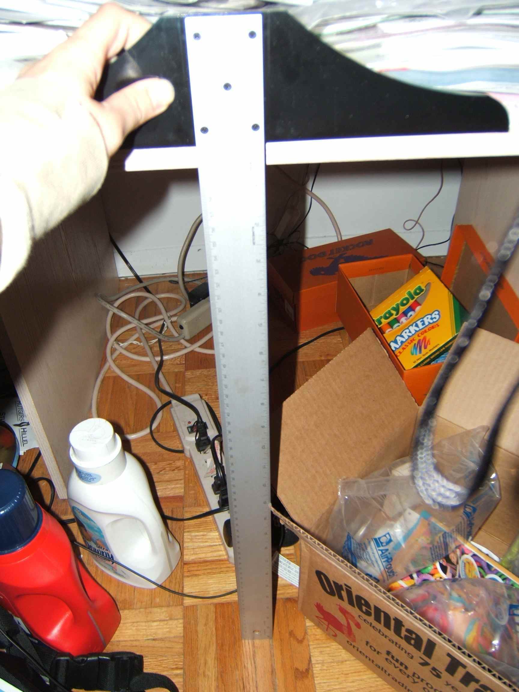 Enter the next idea: if I could measure down from the string, why not measure down from another reference point? The main surface of the desk? So I measured the distance between the main surface and the shelf.