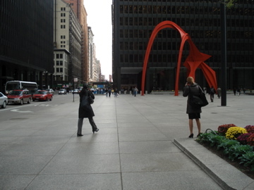 kate ended up hanging out with gabe and i for the rest of the weekend. on october 29, 2006, the three of us set out for union station. around 4:30, we arrived at the calder sculpture. i swear, the feeling that was felt in that moment can never be put into words. the sun shown orange and was reflected by the glass buildings, giving everything a peaceful sepia tone. we reveled in the crisp fall air, and promised that we would see each other again.