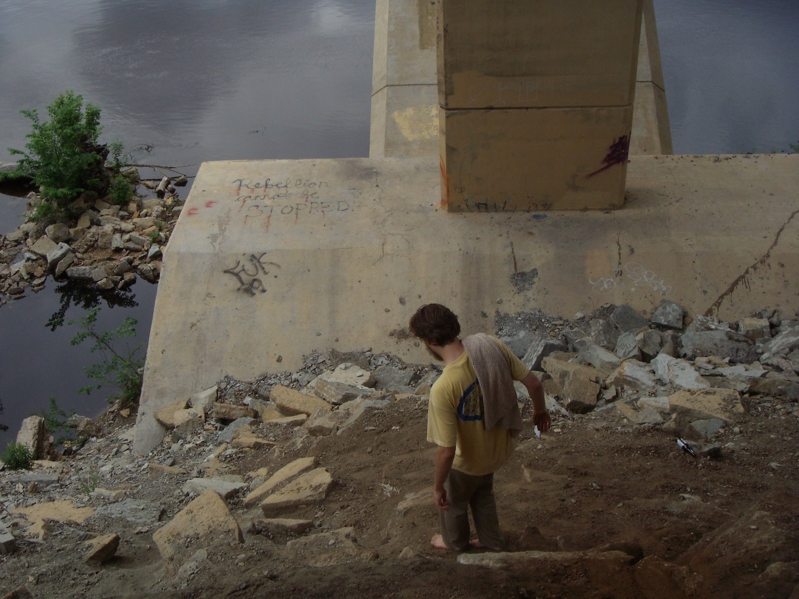 I went down to my favorite spot by the river (which I like in part because it's close to where I live and in part because it's hard enough to access that people haven't left too much garbage down there. Sometimes when I go I make a point of cleaning it up a bit, but right now I had more important things to worry about. Like the fact that I needed to jump into a body of water while fully clothed.