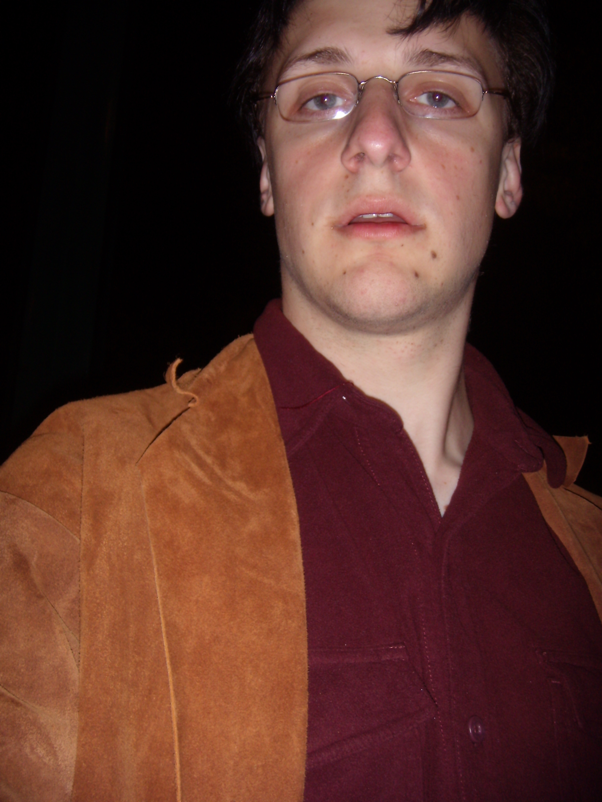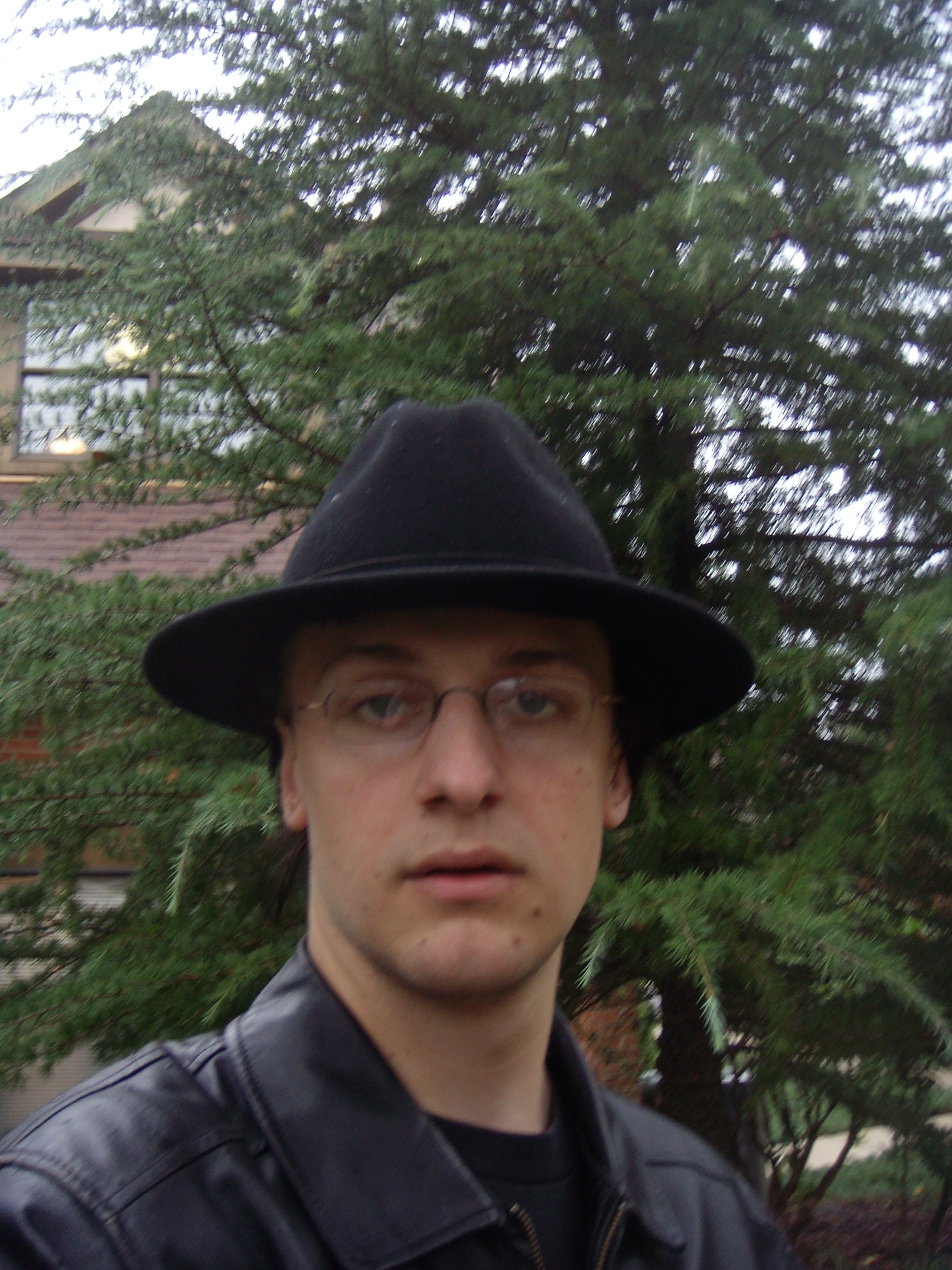 It was a rainy day, so I wore my felt hat and leather jacket, to keep me dry, plus a resigned expression, for the rain that would start again soon after this was taken.